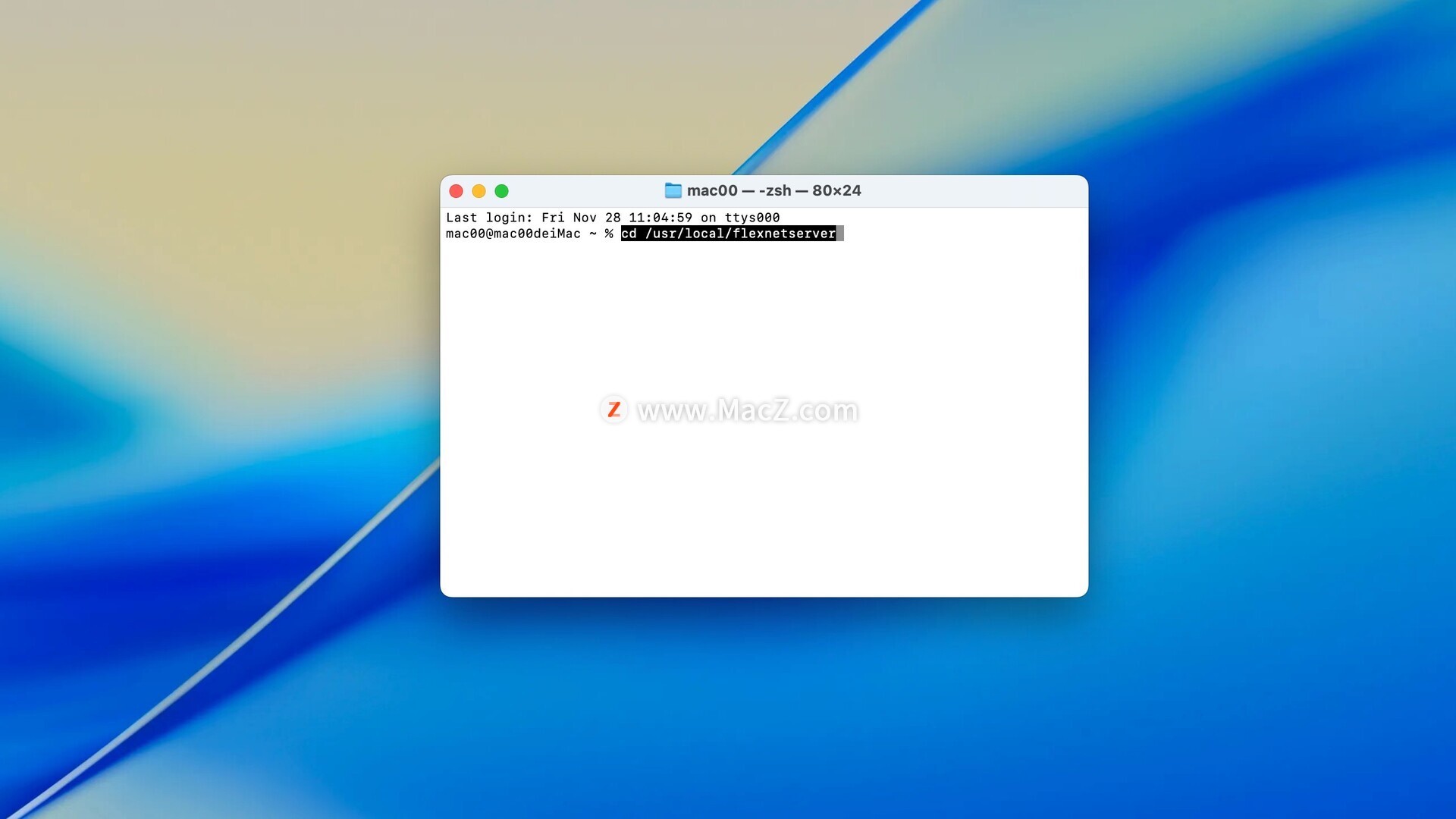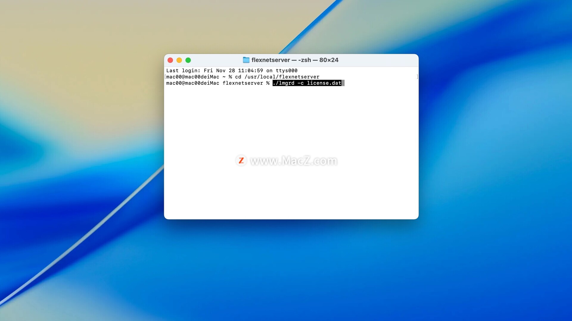 替换完成后,应用程序-实用工具中打开终端,执行第一个命令cd /usr/local/flexnetserver ,回车