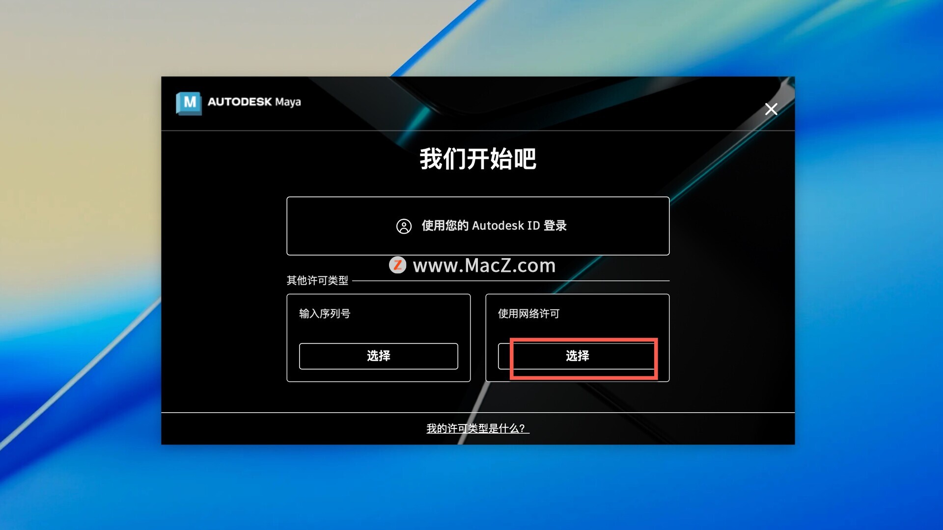 操作完毕后,应用程序中打开软件,在使用网络许可处,点击选择