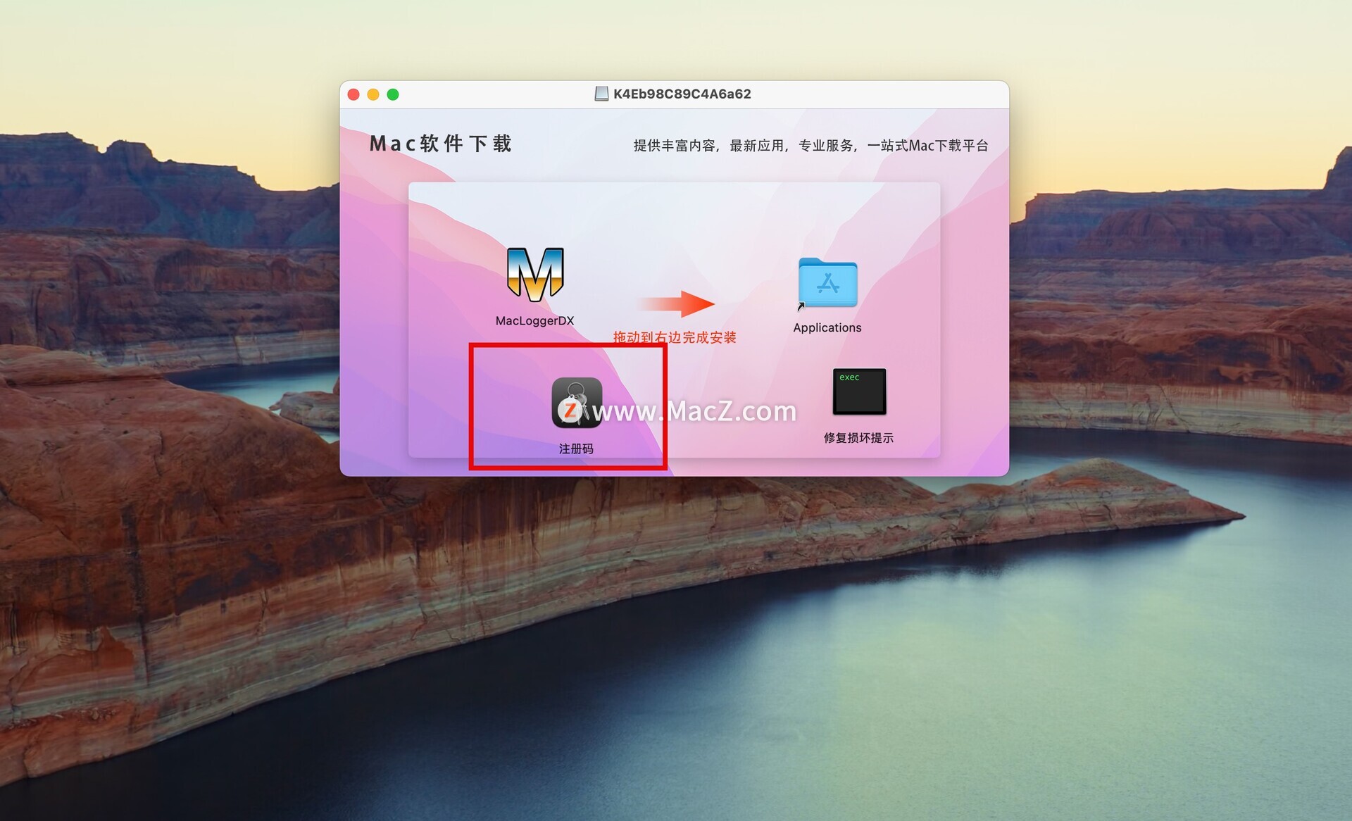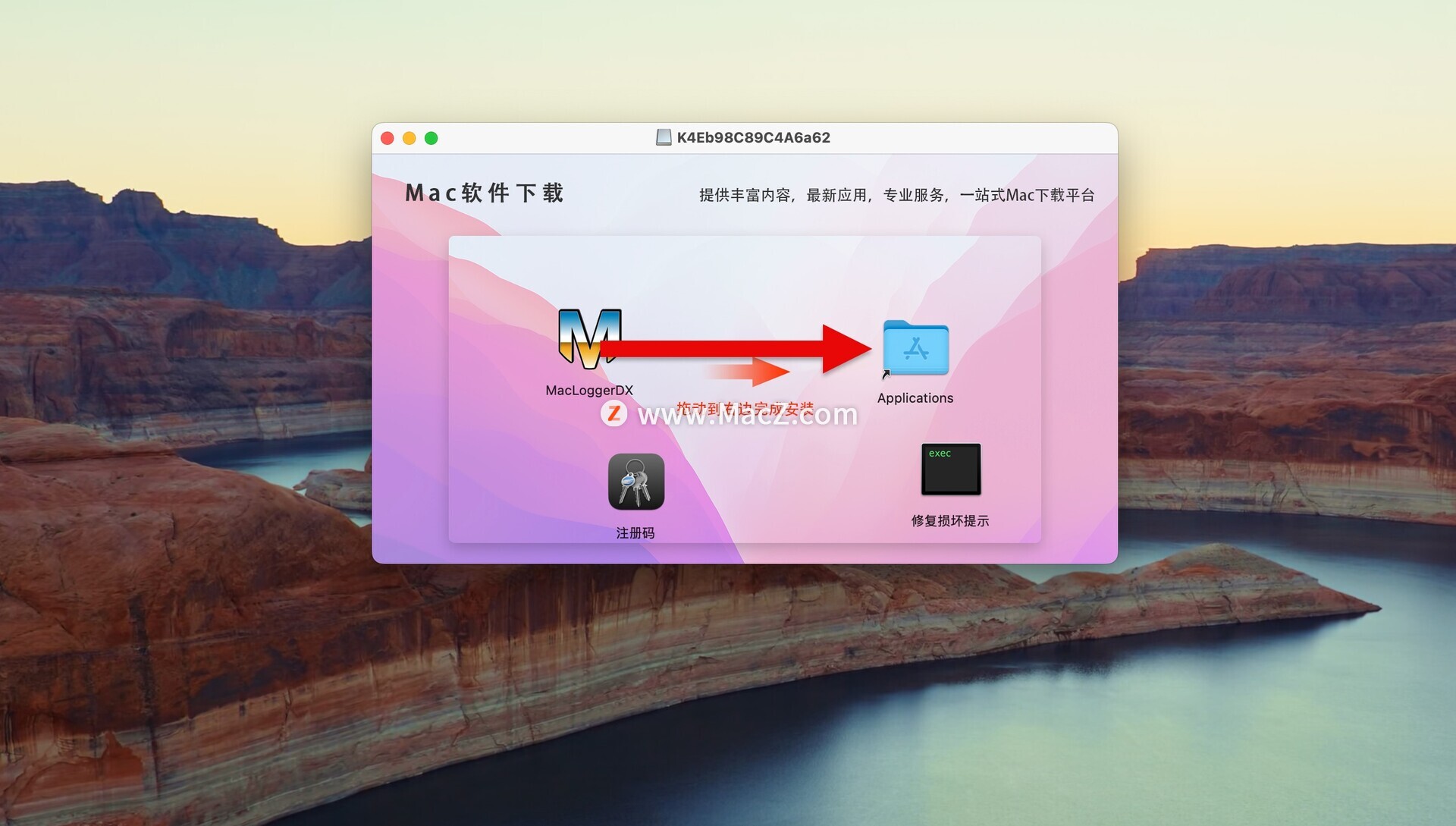 安装包下载完成后打开,拖动左侧的MacLoggerDX
