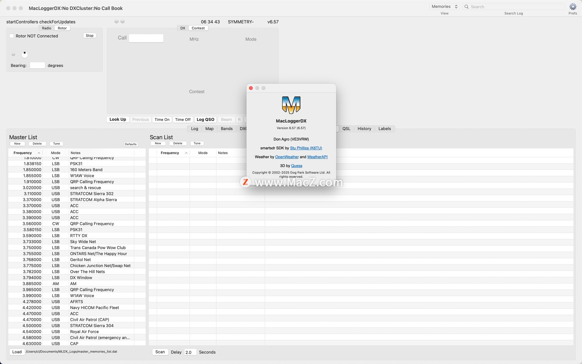 MacLoggerDX Mac版可以用组织和过滤您最喜爱的 DX 集群中的地点,以进行 DX 通信、竞赛或休闲闲聊。 MacLoggerDX 支持近一百个无线电,自动调谐到您感兴趣的位置,并四处摆动您的光束。提醒您罕见的联系人或乐队空缺并进行查找,显示在 2D、3D 和卫星地图上,并将您的联系人记录到超快速的 SQL 数据库中。当乐队开放或发现稀有 DX 时,MacLoggerDX 还可以向您发送电子邮件。奖项跟踪、乐队活动、时间表、回忆、QSL 生成、ADIF 导入、导出、俱乐部日志集成、eQSL、LoTW 确认等等。