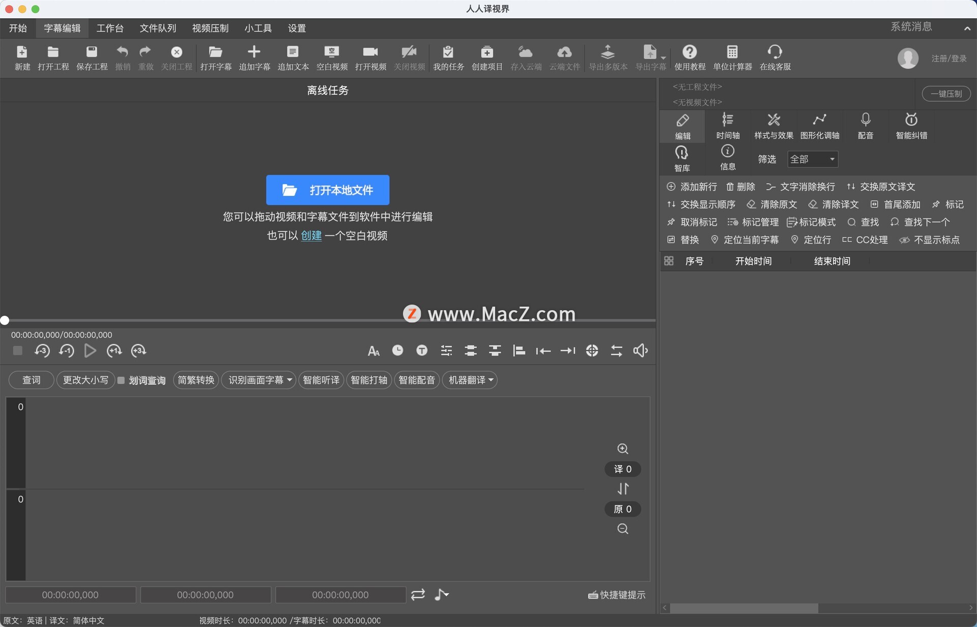 人人译视界 for Mac是一款免费的智能协同翻译软件,利用智能技术、率先采用AI翻译+校对的模式,可有效帮助译者提升翻译效率。人人译视界mac版吸取人人影视字幕组十四年视频翻译流程化管理经验,利用人工智能技术、率先采用AI翻译以及人工校对的模式,功能强大,有效提升您的翻译效率!测试环境:MacOS 13.6
