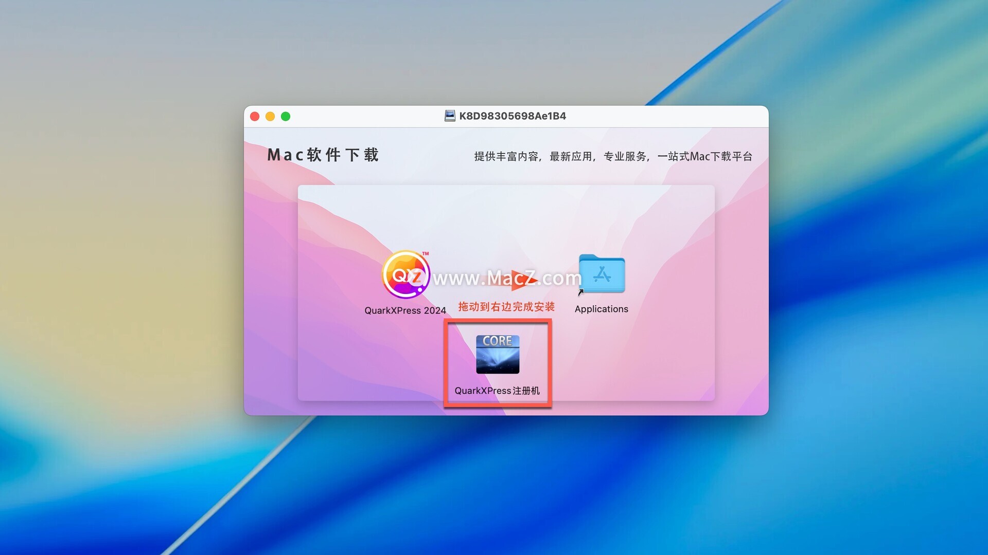 下载完成后打开,拖动左侧的软件到右侧应用程序中即可