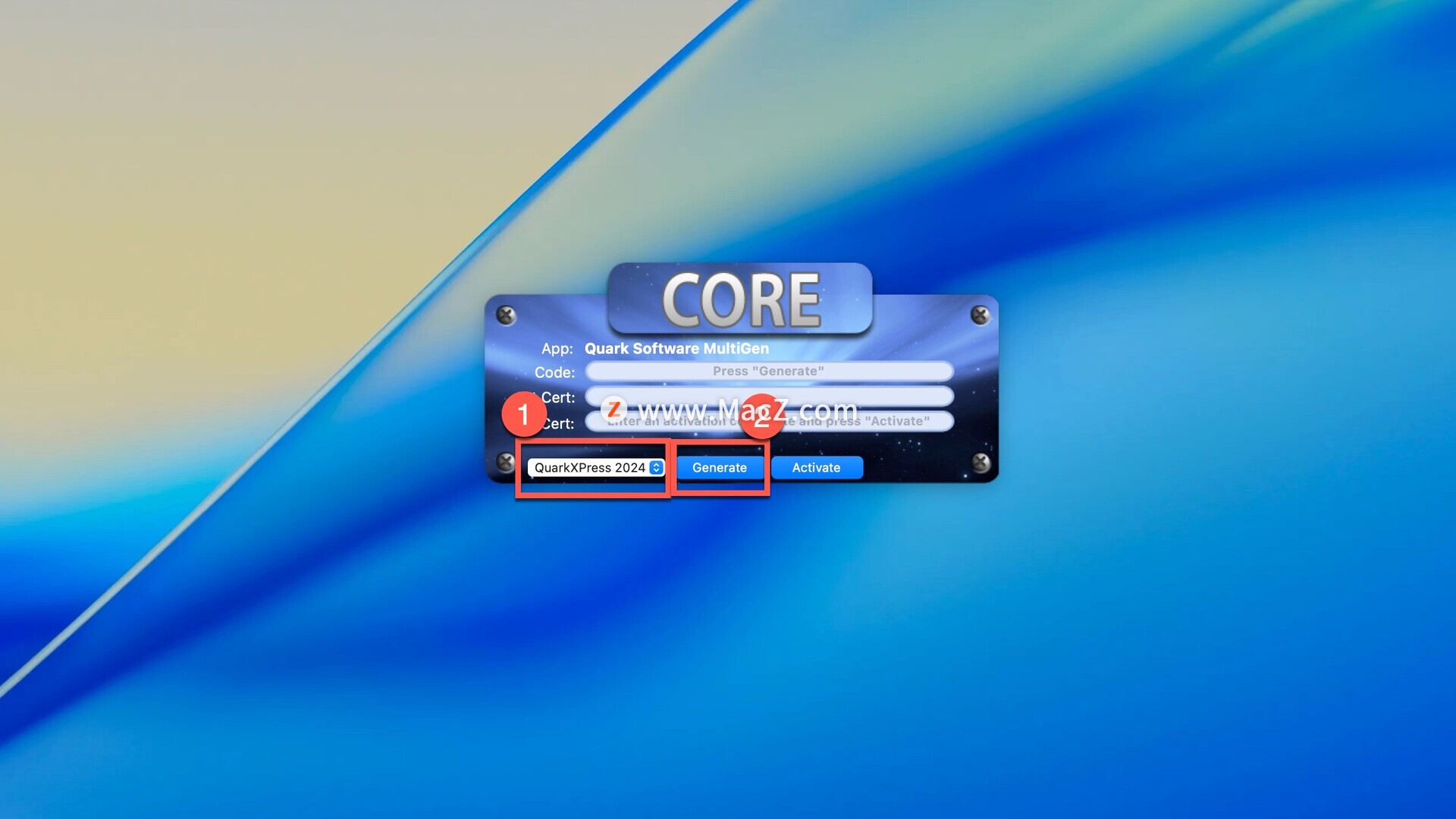 弹出注册机页面,选择QuarkXPress 2024 然后点击Generate生成注册码并复制,如图
