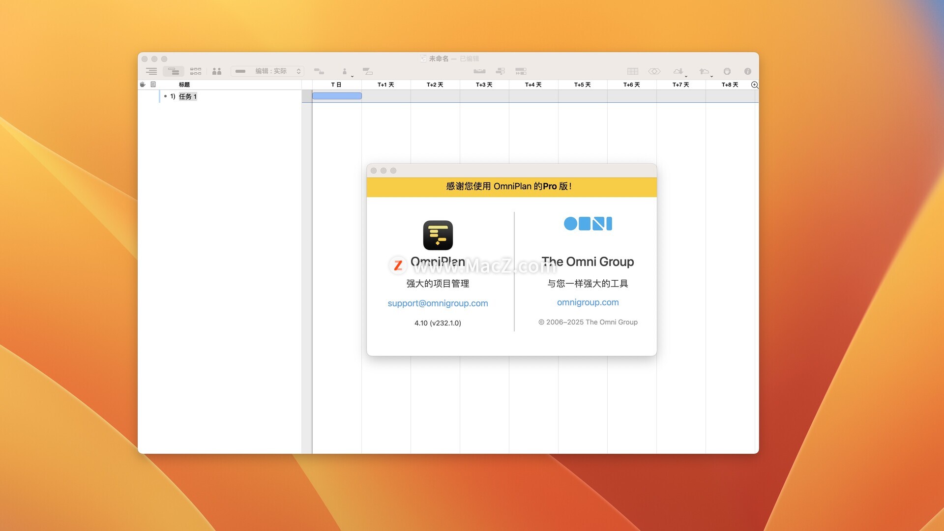 OmniPlan pro for Mac是Mac OSX平台的的一款非常强大的项目管理软件,它提供的功能包含了自定检视表、阶层式的纲要模式、成本追踪、里程碑、任务限制与相关性、资源分配、时程控制、Gantt 图表、违反事项显示、关键路径等等。OmniPlan旨在帮助您可视化,维护和简化您的项目。测试环境:MacOS 15.2