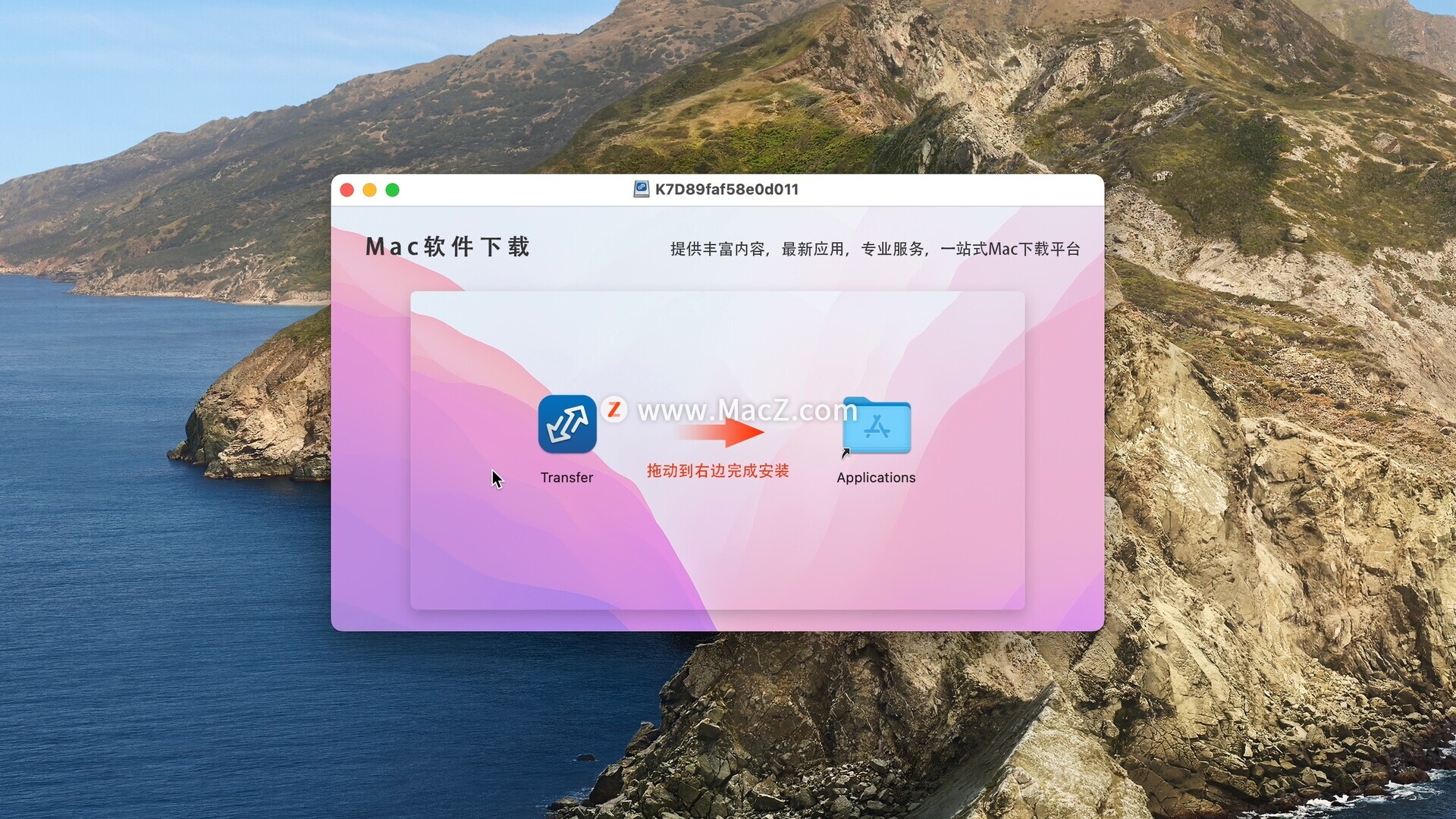 将左侧的Transfer拖动到右侧的applications中即可,如图