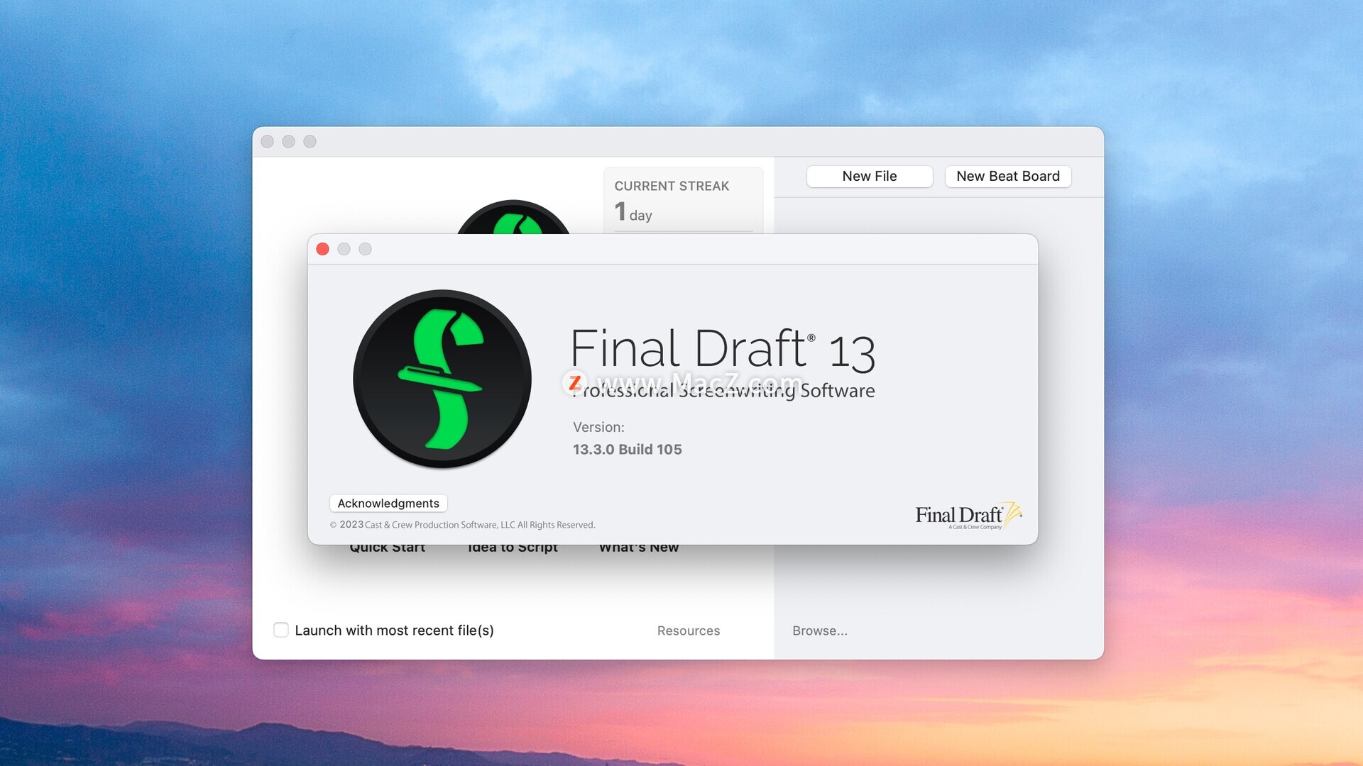 Final Draft 13 for mac是全球最畅销的剧本创作软件,Final Draft 13 提供了一个完全可定制的写作环境,您可以在其中规划、概述、协作和分享您的故事,将您的想法转变为可立即制作的脚本。