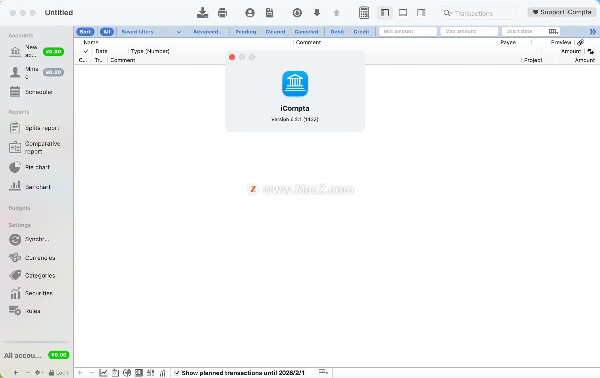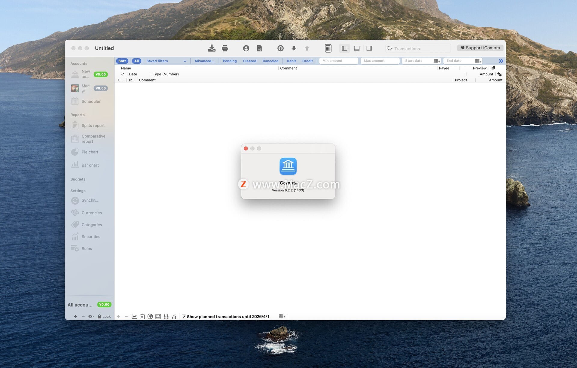 iCompta for Mac是一款专为Mac电脑设计的个人财务管理软件。它拥有用户友好的界面,可以帮助用户轻松管理支出、收入和投资,跟踪财务状况,并开始储蓄。软件支持多账户和多币种管理,可以自动交易分类,并提供预算跟踪和统计与分析功能。此外,iCompta for Mac还支持从各种金融机构导入数据,以及将数据导出为CSV、QIF等多种流行格式,方便用户与其他财务应用程序进行数据交换。软件由FrenchApp开发,支持多种语言,包括英语、法语、德语、西班牙语等,让不同地区的用户都能够得到贴心的语言支持。总之,iCompta for Mac是一款功能强大、操作简便的个人财务管理软件,适用于个人、家庭或小型企业使用。测试环境:MacOS 14.2