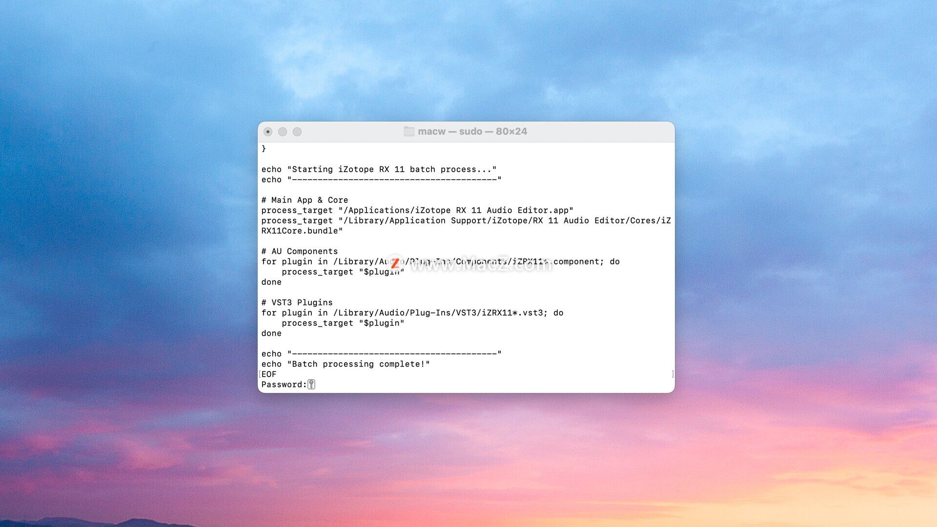 将命令复制粘贴到终端中,回车输入密码再次回车,等待命令运行完成即可