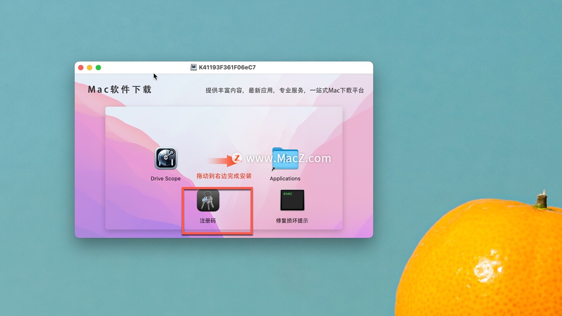 Drive Scope 2破解版下载完成后打开,将左侧Drive Scope拖动到右侧应用程序中进行安装