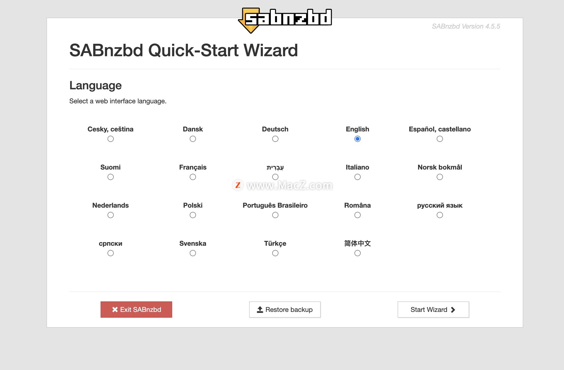 SABnzbd 现在附带 16 个本地化版本: