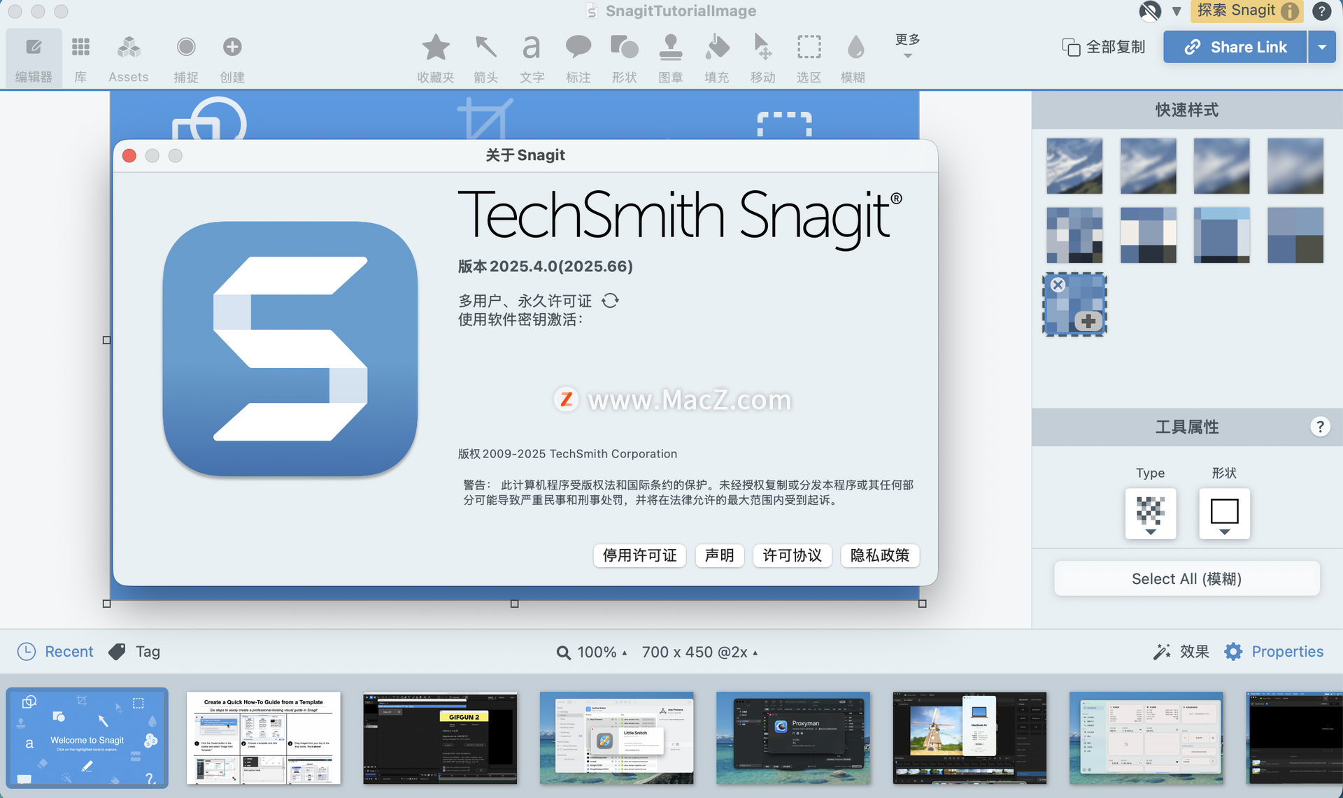 TechSmith Snagit 是 TechSmith Corporation 开发的屏幕捕获和图像编辑软件。它允许用户捕获计算机屏幕的屏幕截图或视频记录、添加注释以及使用各种工具编辑捕获的媒体。测试环境:MacOS 15.2