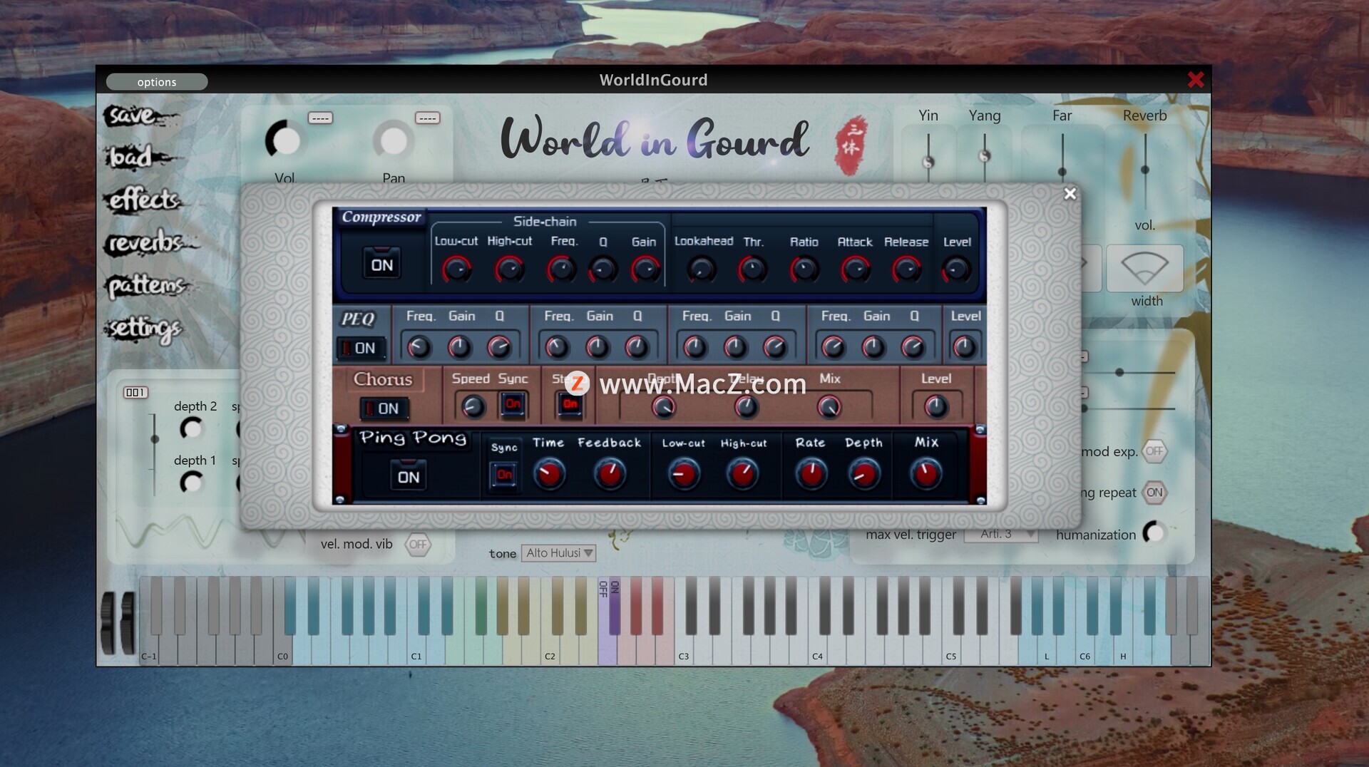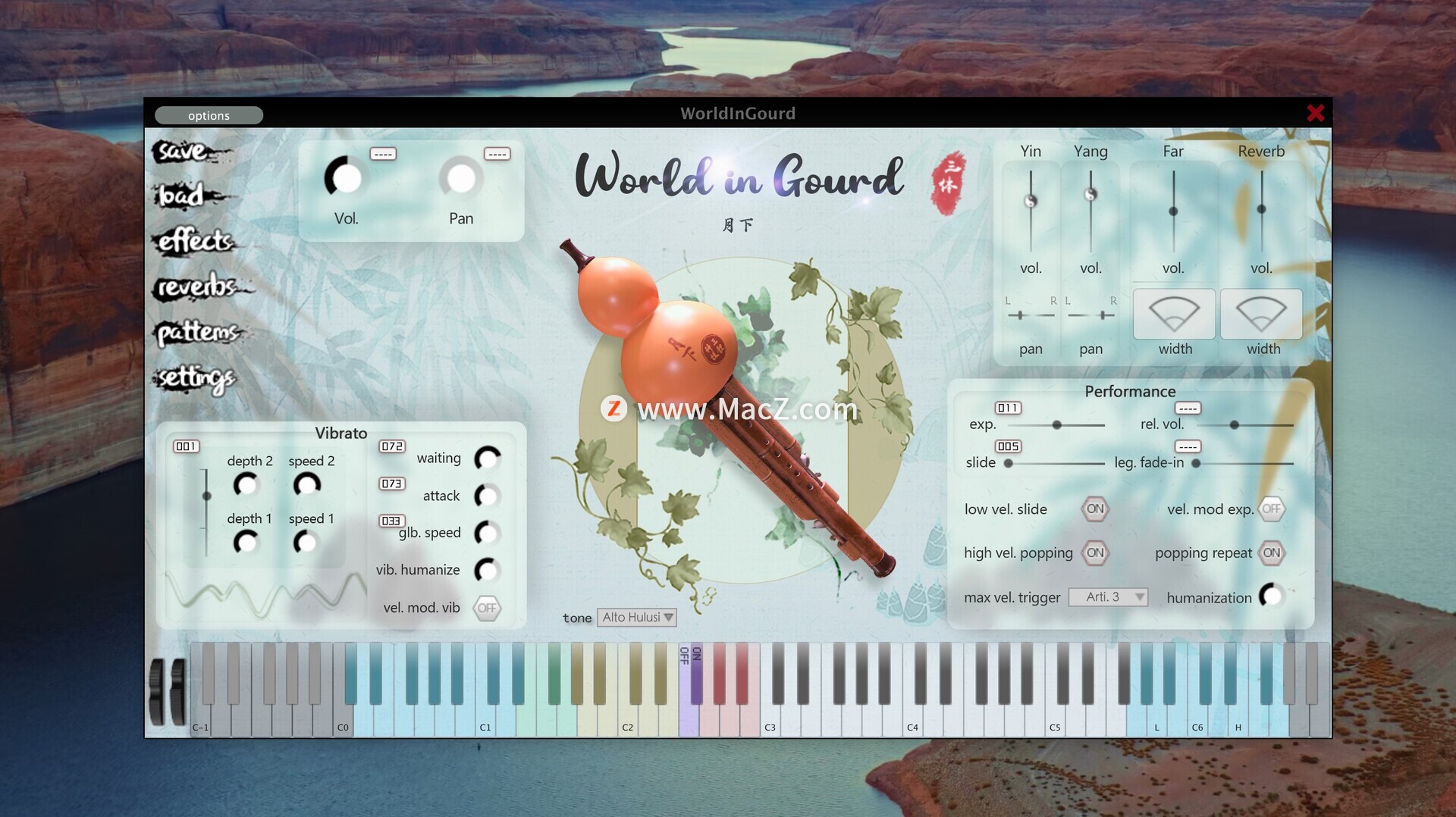 - 基于真实样本的 LFO 引擎使 World in Gourd 的颤音既真实又可调节。
