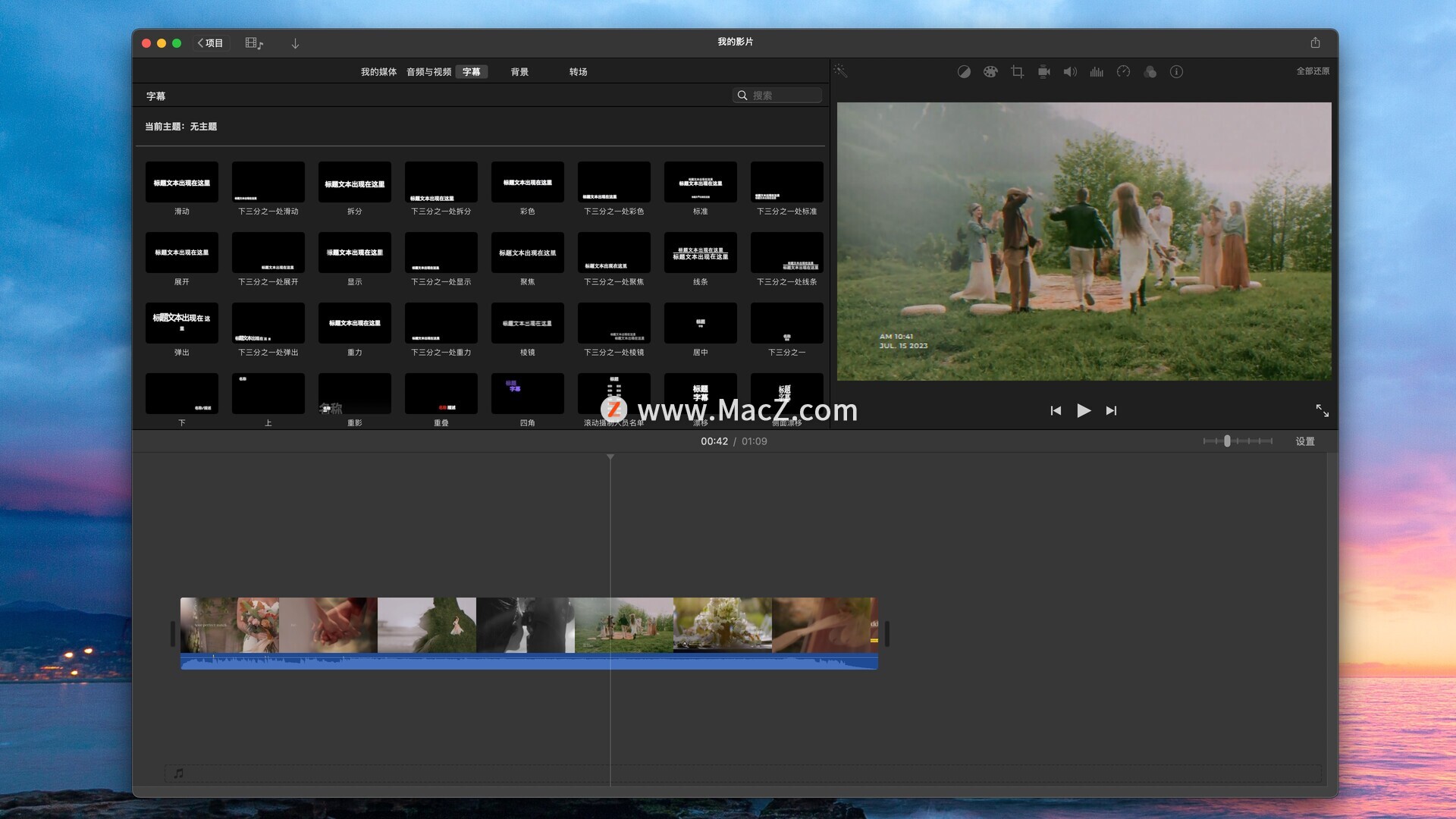 你可以从众多风格中进行选择,为你的影片增加精美的动态字幕和演职人员表。