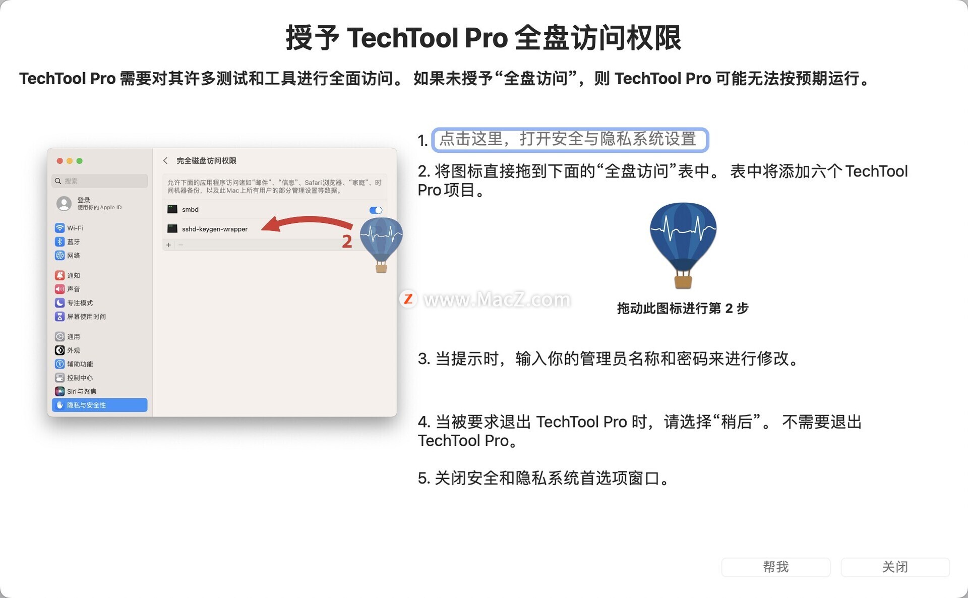 运行软件会弹出完全磁盘访问