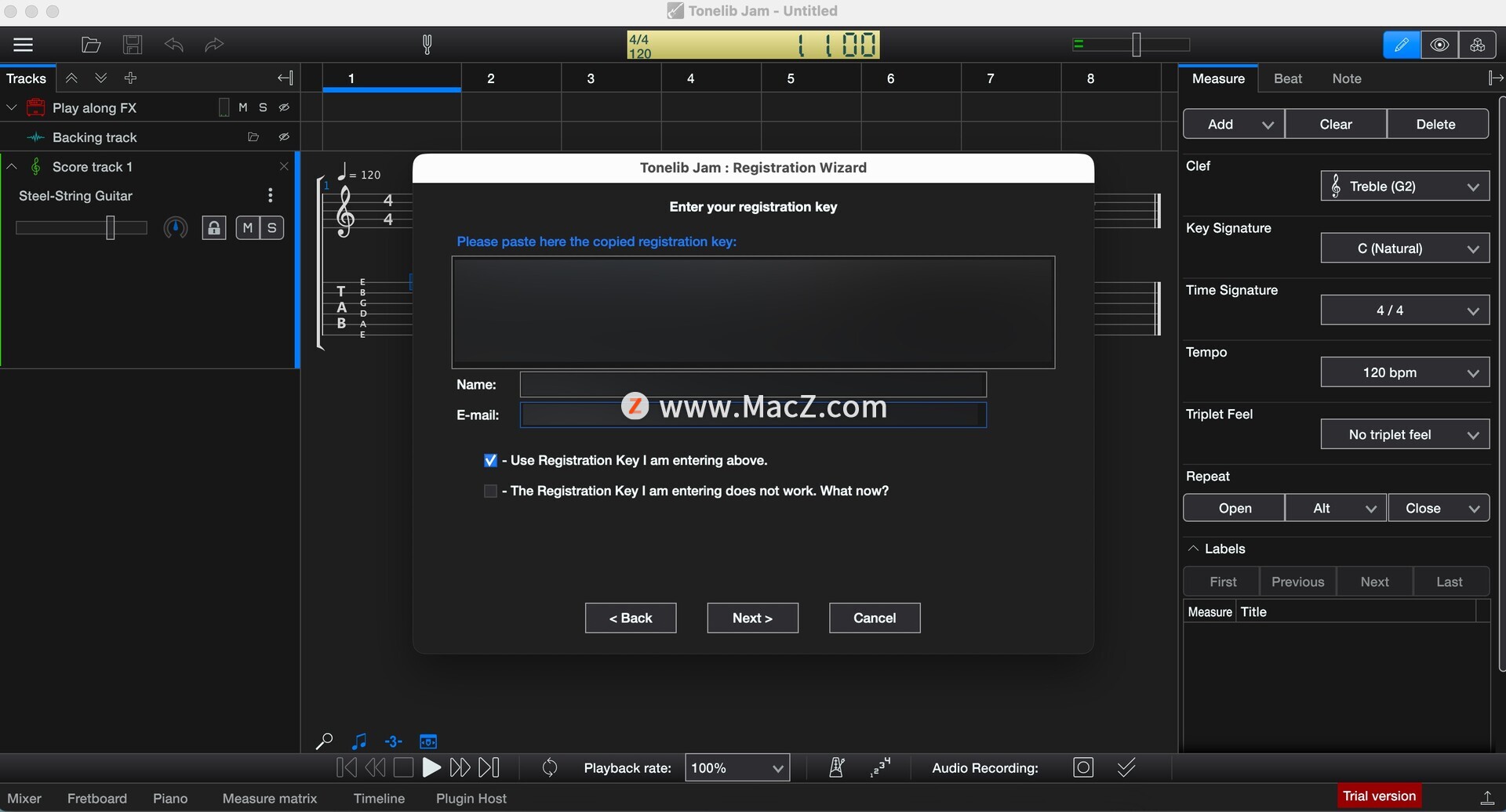 全面的吉他效果处理:内置了多种高品质的吉他效果器,如失真、合唱、延迟、回响等,让用户能够轻松调整音色,实现专业级的吉他声音效果。 直观的乐谱与标签编辑器:提供强大的乐谱和标签编辑器,支持用户自定义创作吉他曲目,无论是编写新曲还是改编旧作,都能轻松应对。同时,支持多种音符输入方式,让创作过程更加流畅。