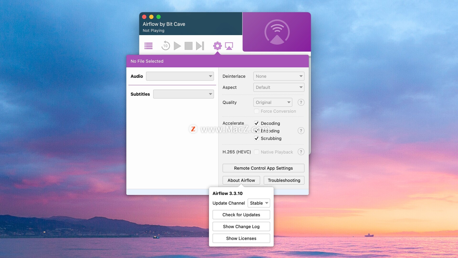 AIrflow for Mac是一款能够让Mac视频投屏到AppleTV或Chromecast上,并且支持手动选择字幕,影片,细节设定等操作。AIrflow简单实用,即便是第一次使用,也能在短时间内学会并且操作自如,用户可以随时随地的享受影片,是非常实用的一款工具!