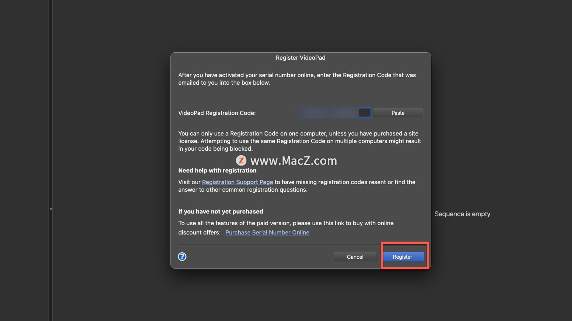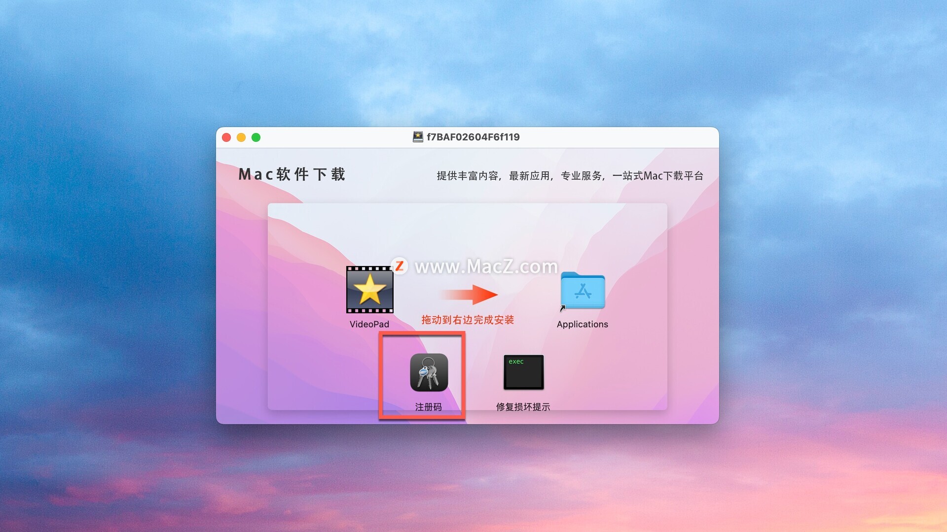 在菜单栏找到“Registrar VideoPad...”,如下图: