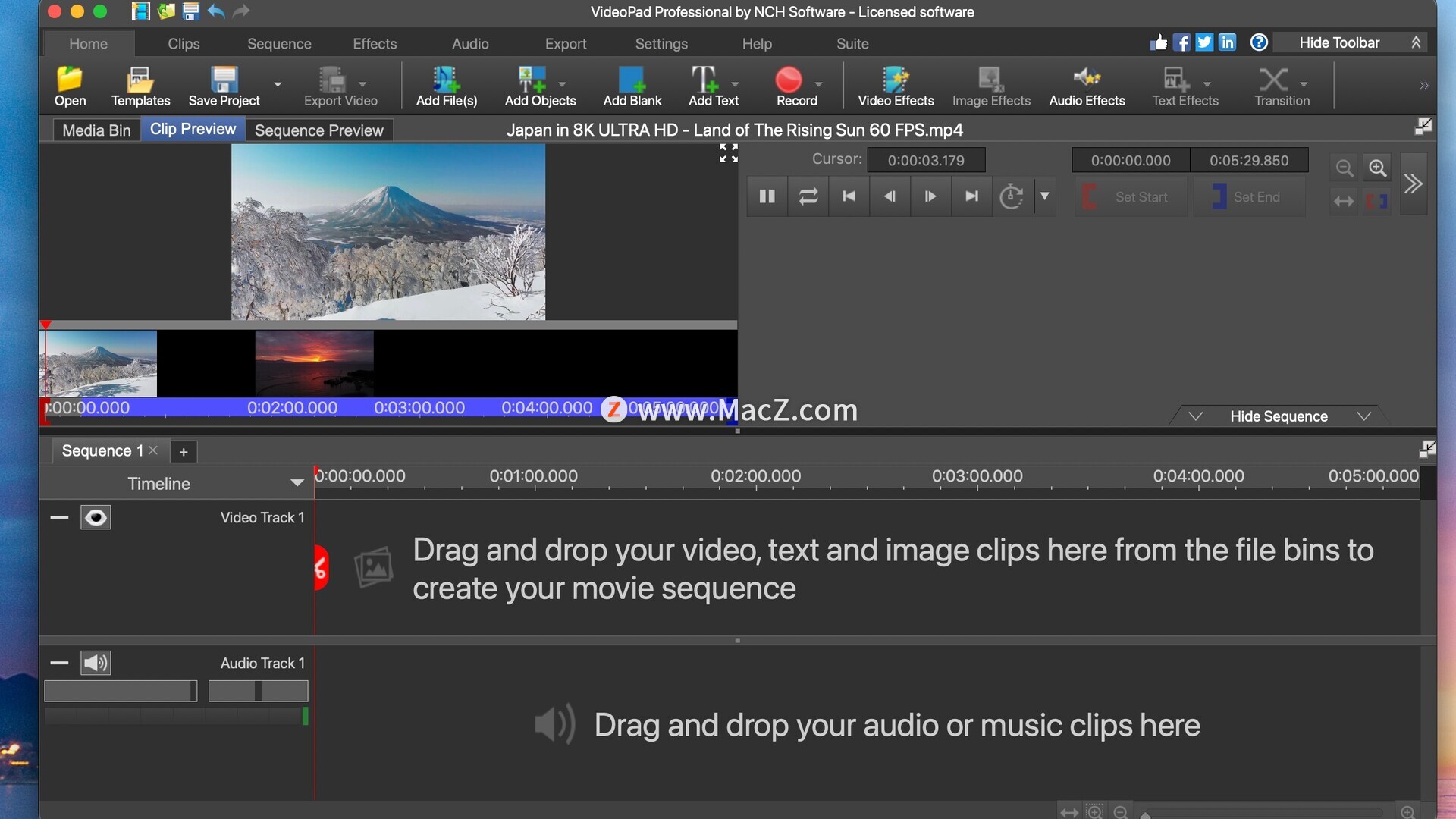 该软件支持多种视频格式,用户可以轻松导入和导出视频。此外,VideoPad 还提供丰富的编辑选项,包括特效、转场、文本添加等,帮助用户创造出令人惊艳的影片。测试环境:MacOS 14.5