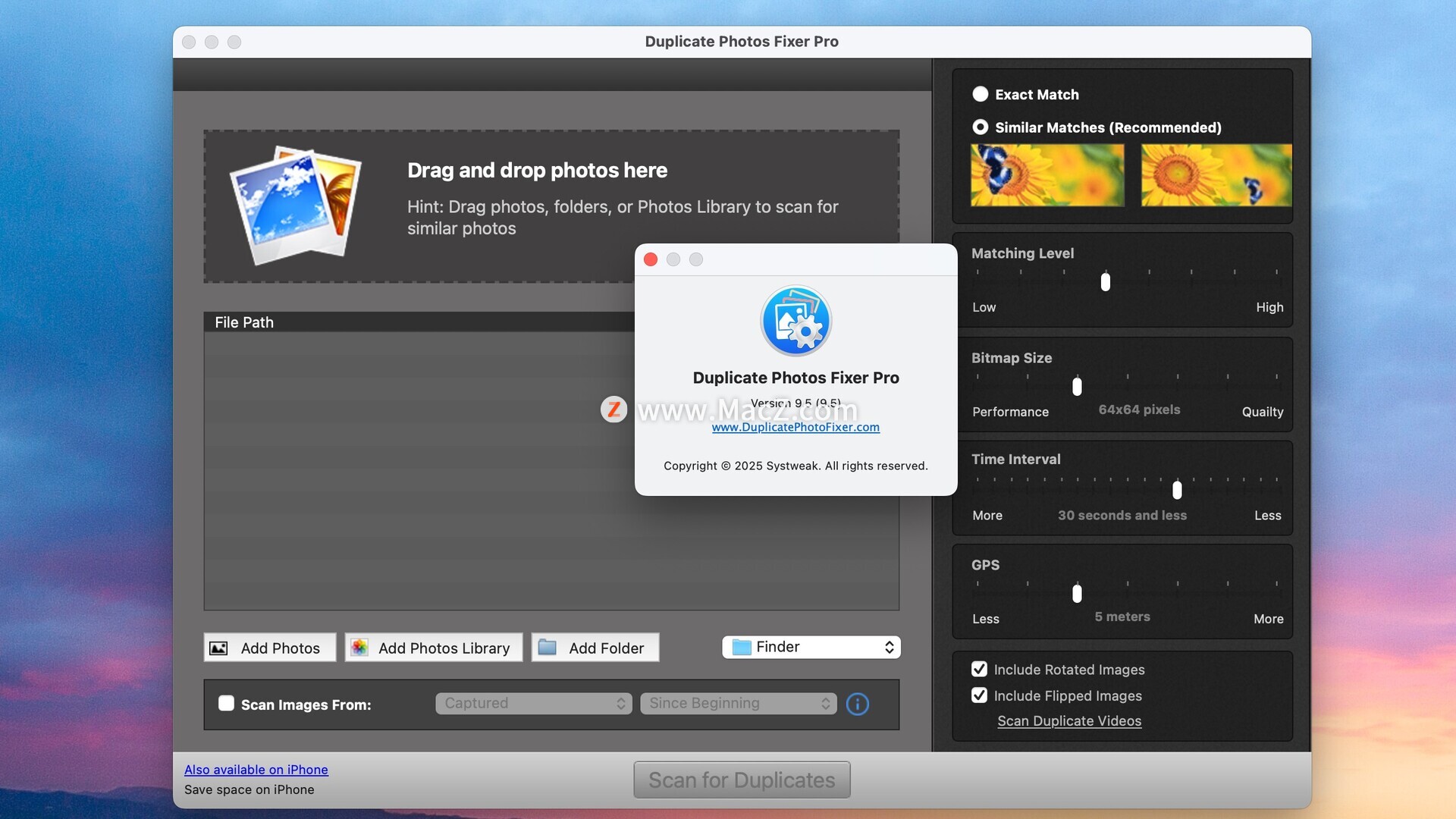 扫描所需的文件夹或iPhoto /照片库,以识别相同或相似的照片。