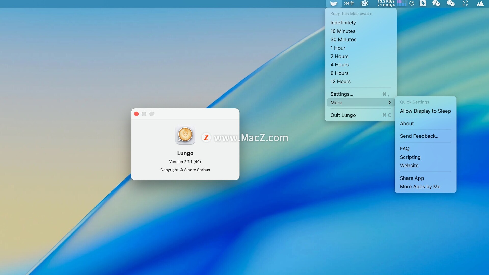 在首选项中设置默认持续时间,通过单击菜单栏图标激活Lungo时使用。