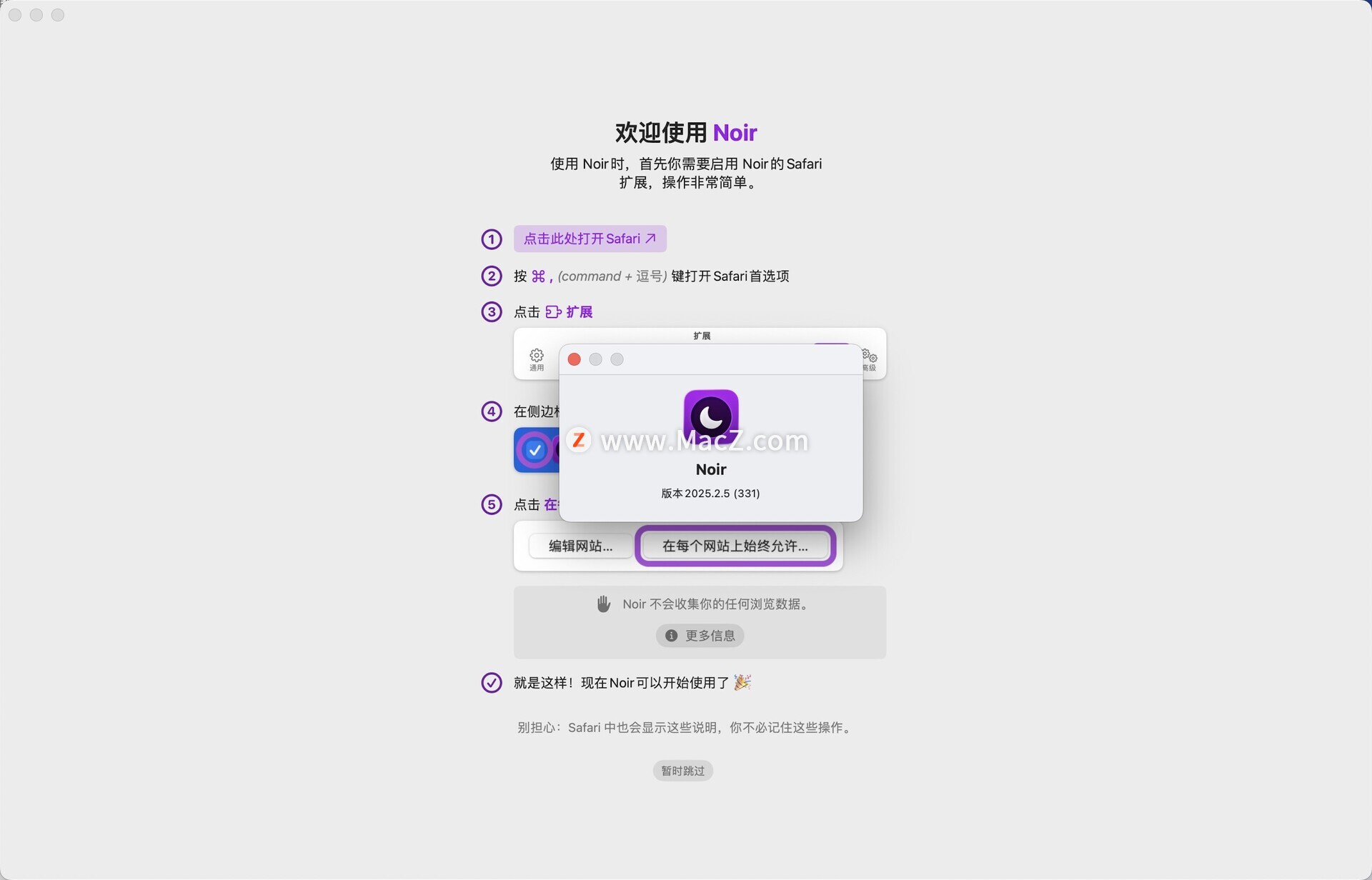 Noir是一款Safari扩展工具,它能为你访问的每个网站自动添加深色模式。