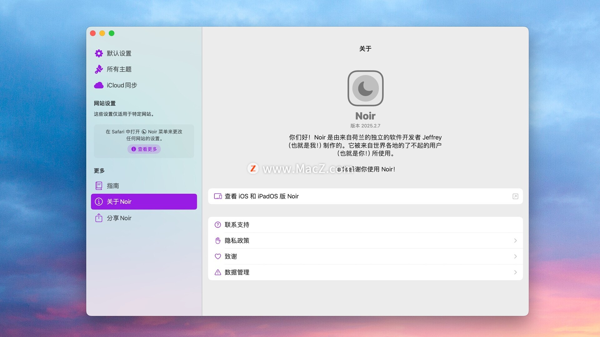 Noir – Dark Mode for Safari为每个网站量身定制的漂亮暗色模式,既保留了对比度,又能突出亮点,而且有超过20种内置主题和创建自己主题的功能,你可以根据自己的喜好定制效果,量身定制的漂亮暗色模式,既保留了对比度,又能突出亮点。而且有超过20种内置主题和创建自己主题的功能,你可以根据自己的喜好定制效果。测试环境:MacOS 15.5