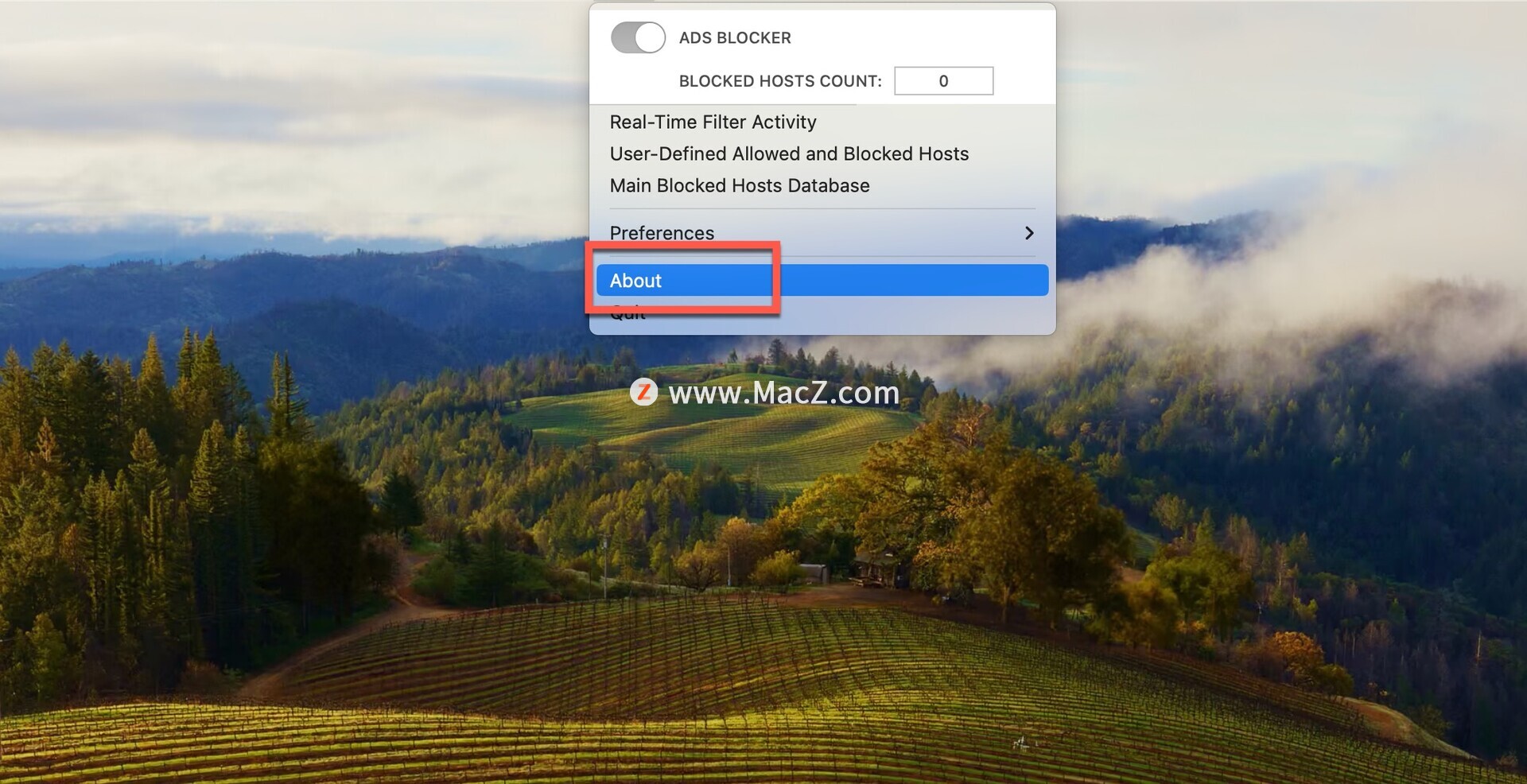 每次运行Adsorb时,过滤器都会自动启用。Adsorb菜单图标将显示在macOS菜单栏的时钟附近。单击此菜单图标启用/禁用Adsorb过滤器或更改Adsorb首选项。