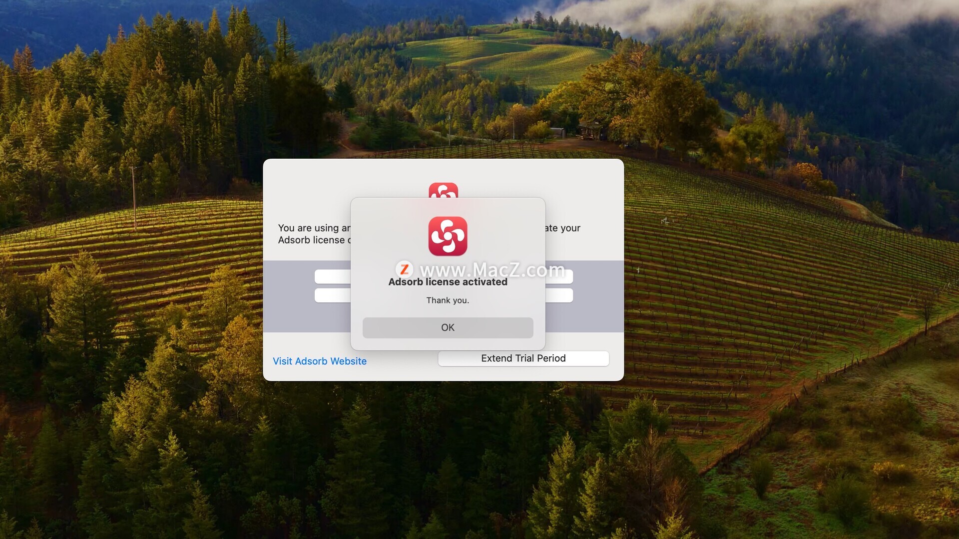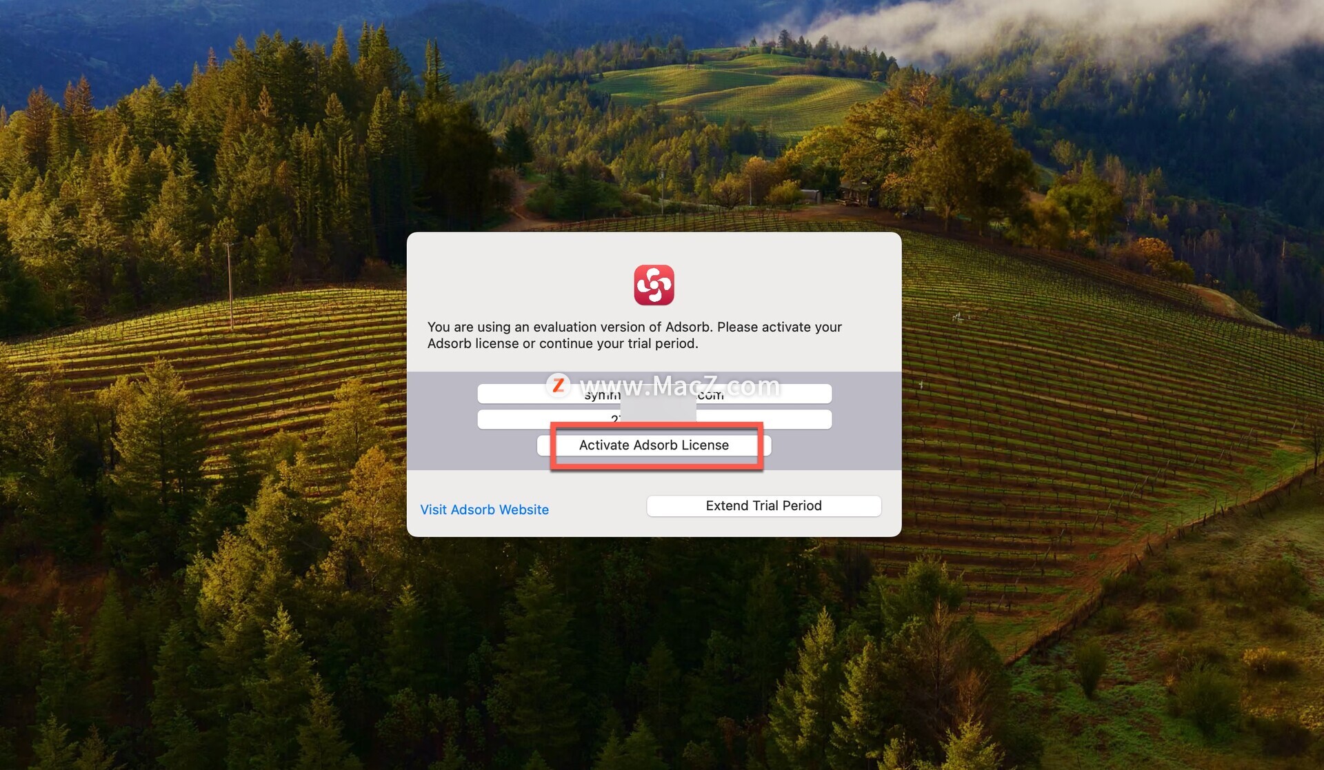 将邮箱和注册码复制到注册页面,点击Activate Adsorb License进行激活