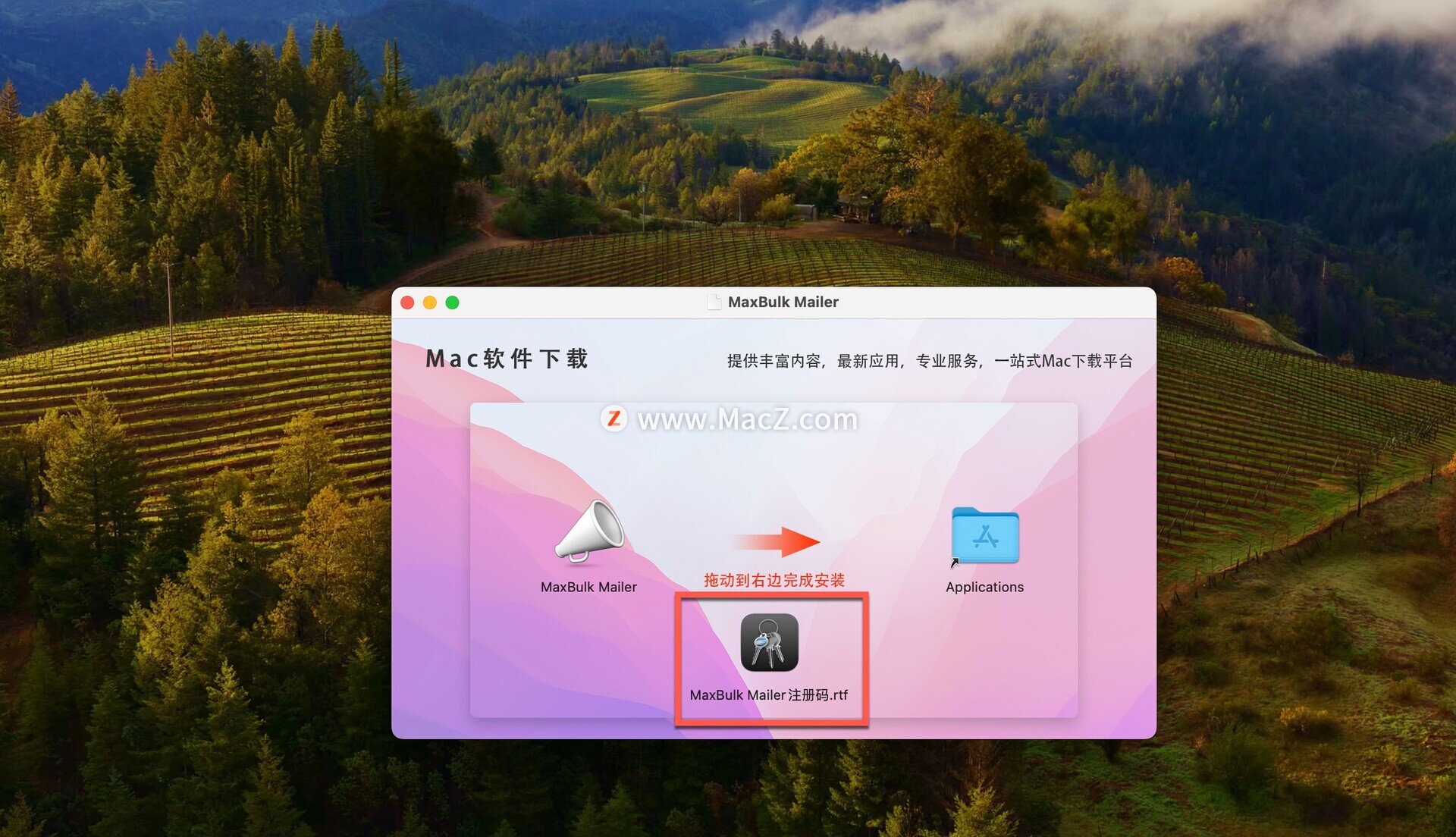将左侧的MaxBulk MAIler Pro拖动到右侧的应用程序中即可,如图
