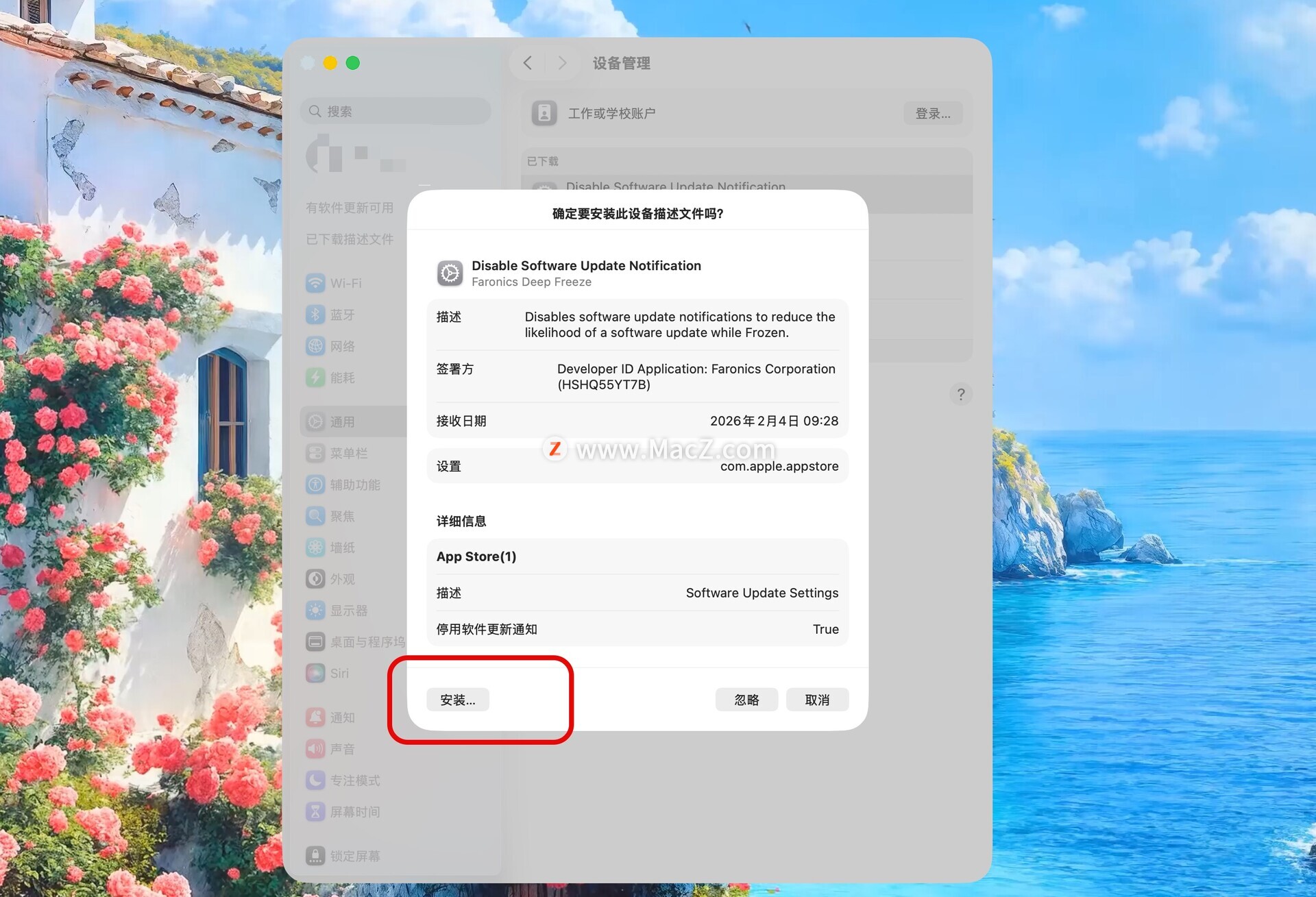 打开系统偏好设置,点击左侧已下载的描述文件-连续点击右侧描述文件两下