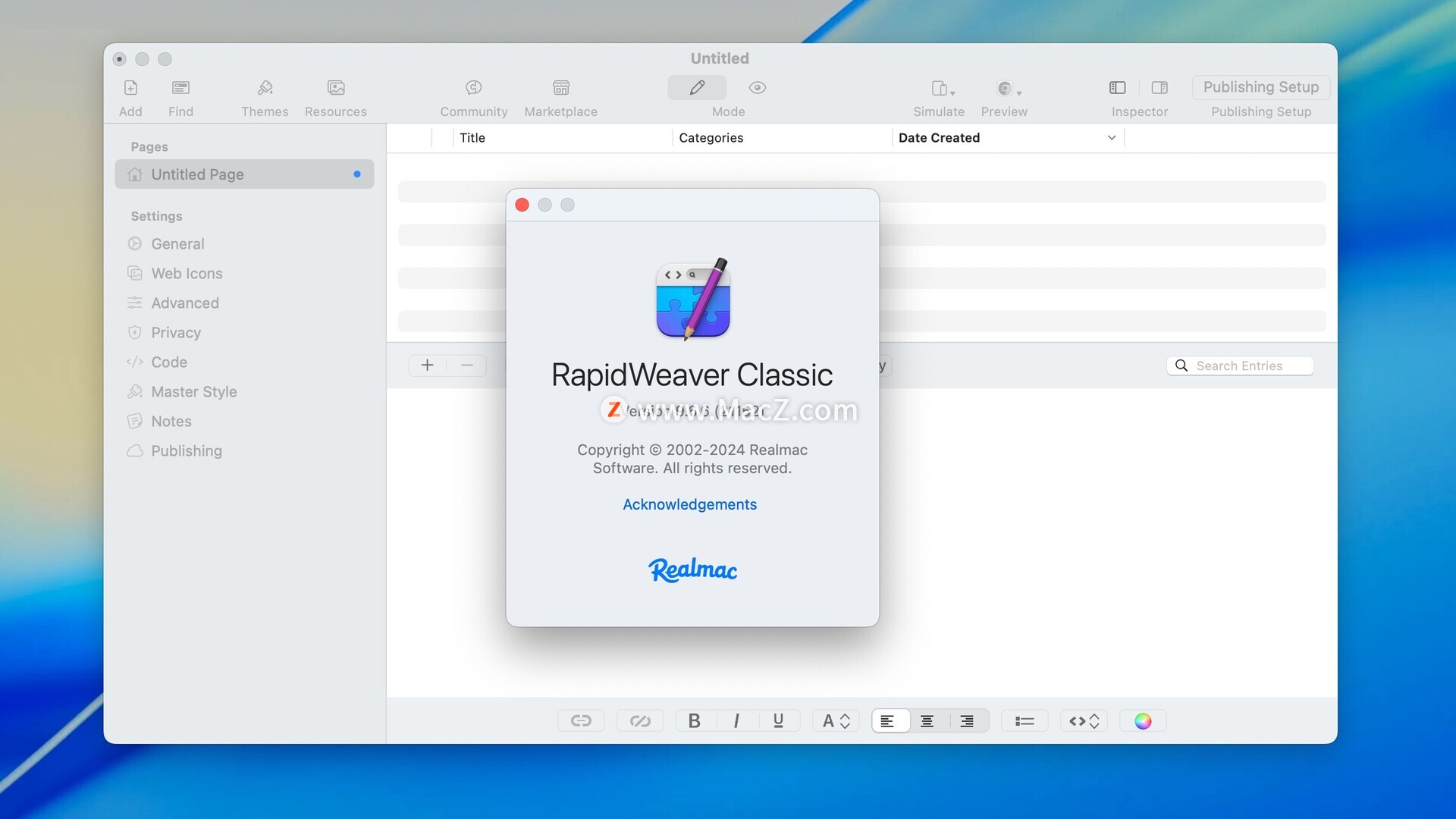 Rapidweaver for Mac是一款功能强大的网站设计和开发工具。它是一款WYSIWYG(所见即所得)网页编辑器,为用户提供了一个直观的界面和丰富的功能,帮助他们轻松地创建、编辑和管理自己的网站。