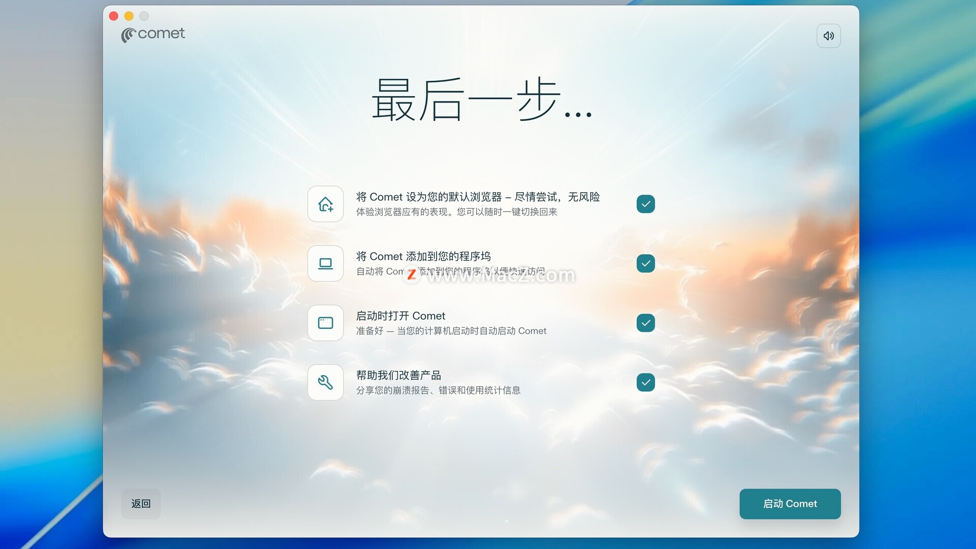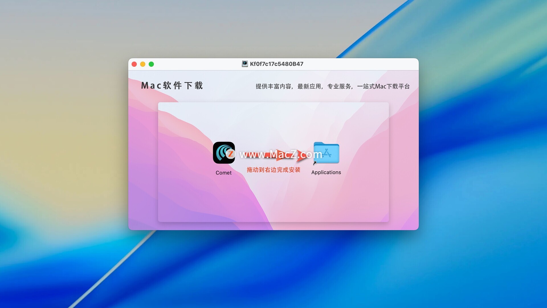 Comet浏览器下载完成后打开,拖动左侧的Comet到右侧应用程序中即可