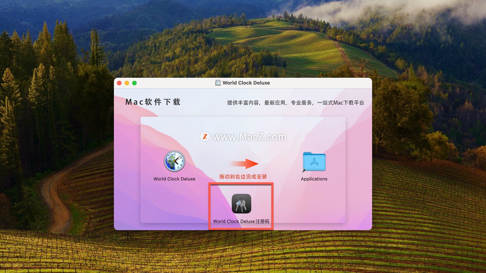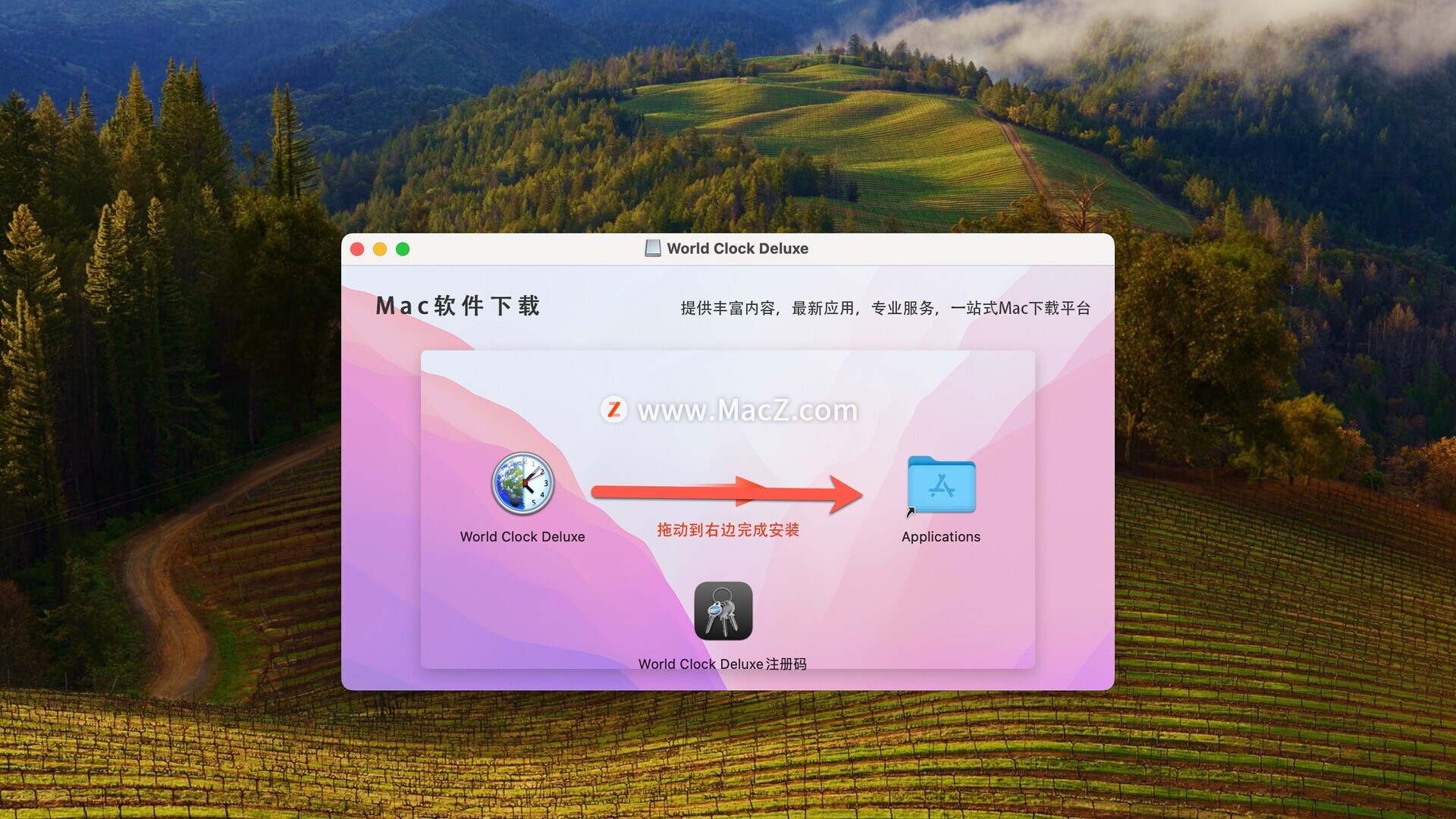 下载软件完成后,打开镜像包,拖动软件world clock deluxe到应用程序进行安装。