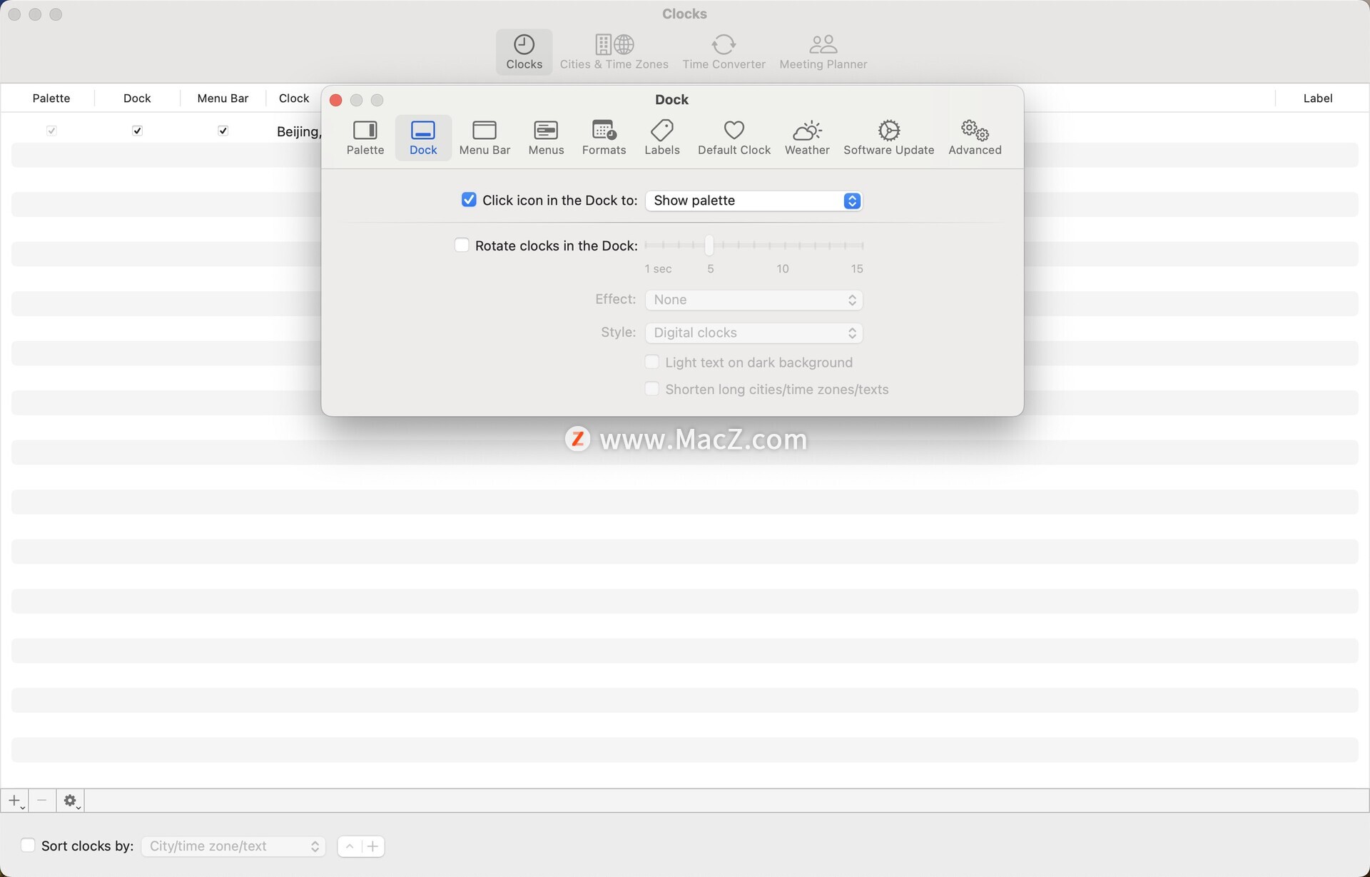 显示在水平或垂直的调色板,在菜单栏和Dock中的多个数字或模拟时钟;