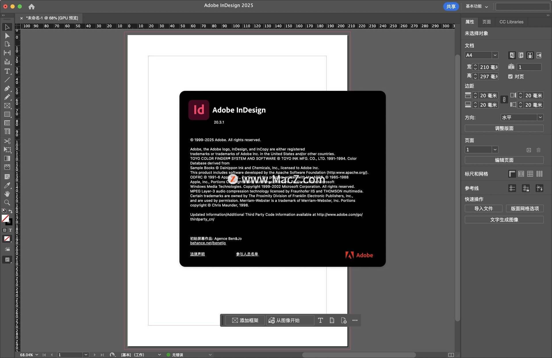 使用 MathML 支持向文档添加数学表达式 将 MathML 添加为 SVG 并直接在 InDesign 中编辑表达式。通过调整字体大小和颜色来自定义表达式样式,以匹配文档设计的其余部分。 导出到 HTML5 包 将 InDesign 文档导出为 HTML5 并将其托管在您的网站或服务器上,以提高 SEO 和可访问性。您可以选择将文本导出为 HTML 文本或 SVG 标签。 云文档工作流程的增强 将文档保存到云端并邀请协作者进行实时编辑。您还可以使用公共链接或组织访问权限共享文档,以便随时随地查看。 通过上下文任务栏集中创造力 将新的上下文任务栏固定到您的工作区后,您可以快速开始使用关键工具并轻松访问相关的后续步骤。 隐藏跨页增强功能 只需简单切换即可轻松管理粘贴板上的跨页可见性。自动页码编排将跳过隐藏的跨页,无论它们是否在画布上可见。