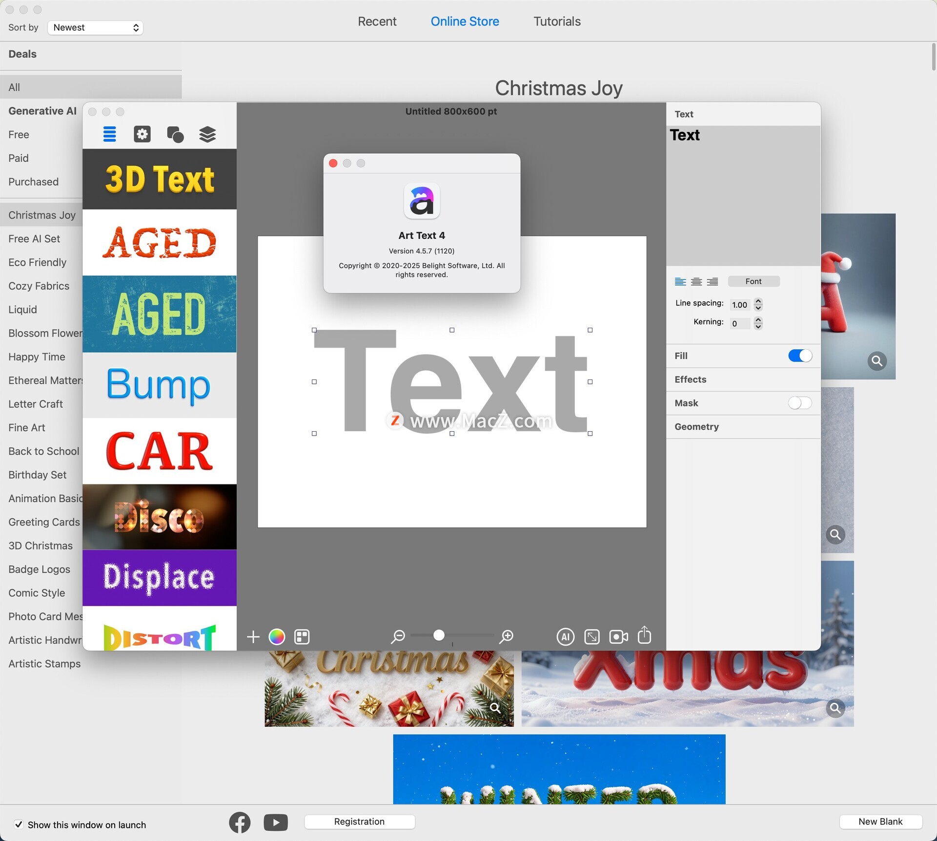 Art Text 4 Mac破解版是Mac系统上一款艺术字设计软件。提供各种样式、材料、纹理、字体和背景选择,可以自定义3D深度,投影,渐变,纹理材料,光源等,使用简单,效果真实。Art Text实现了3D建模引擎,可以将任何文本,符号或象形图转换为3D。测试环境:MacOS 15.5