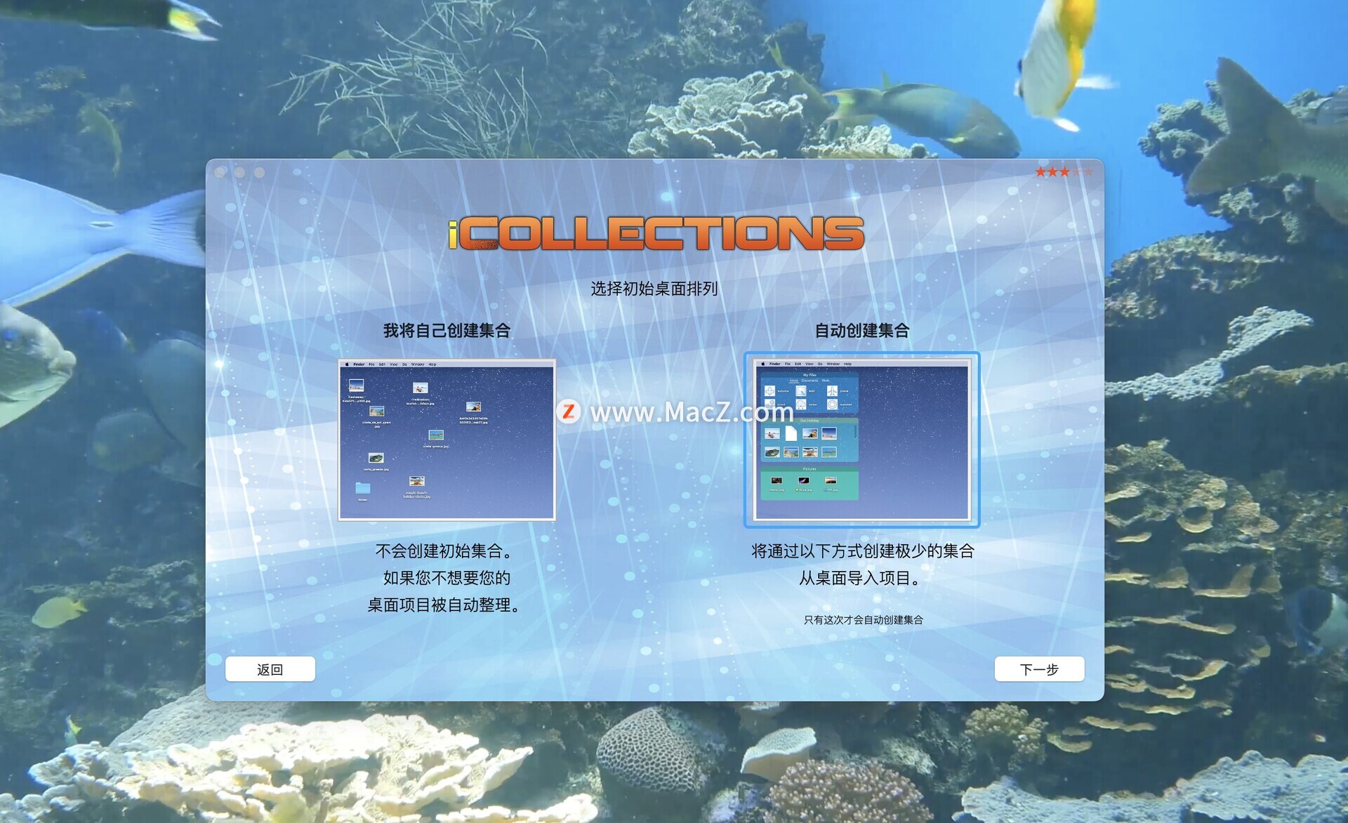 iCollections mac版是Macos上一款桌面文件整理软件,iCollections mac下载可以帮助我们整理mac电脑的桌面上的图片及文件,根据个人实际使用需求将桌面图片及文件分类分区域整理,让桌面瞬间整洁并且满满的逼格。测试环境:MacOS 14.7