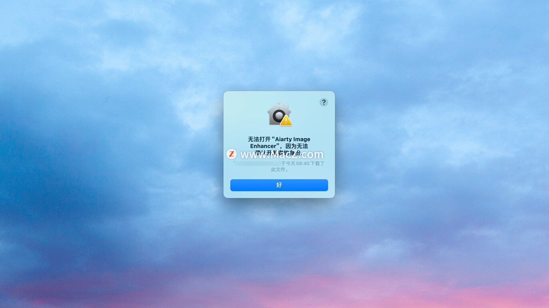 如果打开应用提示 无法打开“AIarty Image Enhancer”,因为无法确认开发者的身份或者.....移至垃圾桶 点击好