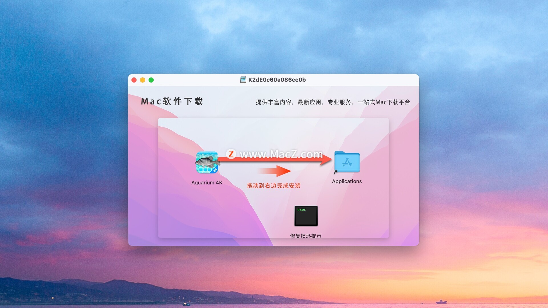 安装包下载完成后打开,拖动左侧的Aquarium 4K