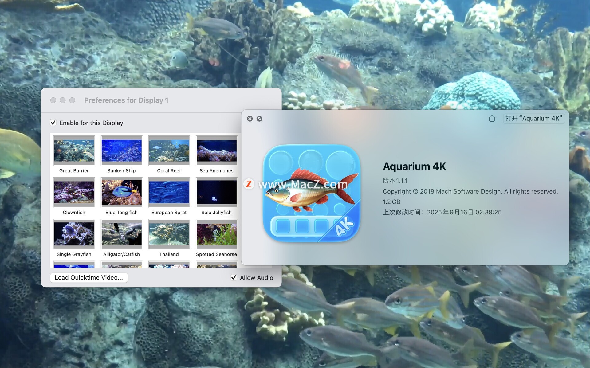 aquarium 4k mac破解版是运行在Mac平台上一款精美的4K海洋水族馆屏保,具有超高效的视频播放屏保功能,可以播放完整的4K视频,拥有超过20个令人惊叹的主题,每个主题都有高清4K视频和最前沿。