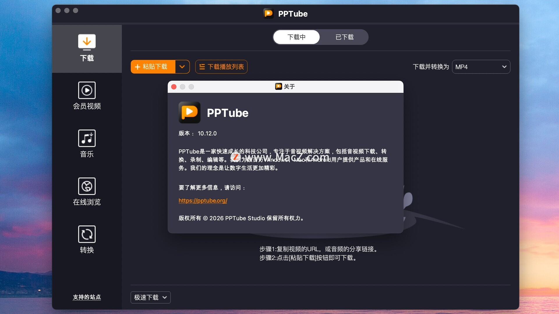 您将在PPTube工具箱中发现更多强大的功能,从而为您的视频下载带来更多便利。视频网站YouTube、Facebook、Instagram、DAIlymotion(播放列表)、Vimeo、Twitch、TikTok(无水印)、Einthusan、NicoNico、Ok.ru、VK、Twitter、Fox、Lynda、YouKu、Yahoo Video、Bilibili、Coub、Vlive.TV、Liveleak、Reddit、Mgoon、Sportstadio、媒体收藏和各种成人网站。音频网站 Spotify、SoundCloud、MixCloud、FreeSound、Bandcamp、VEVO、Last.fm、Hungama、8tracks 及其他音乐共享网站