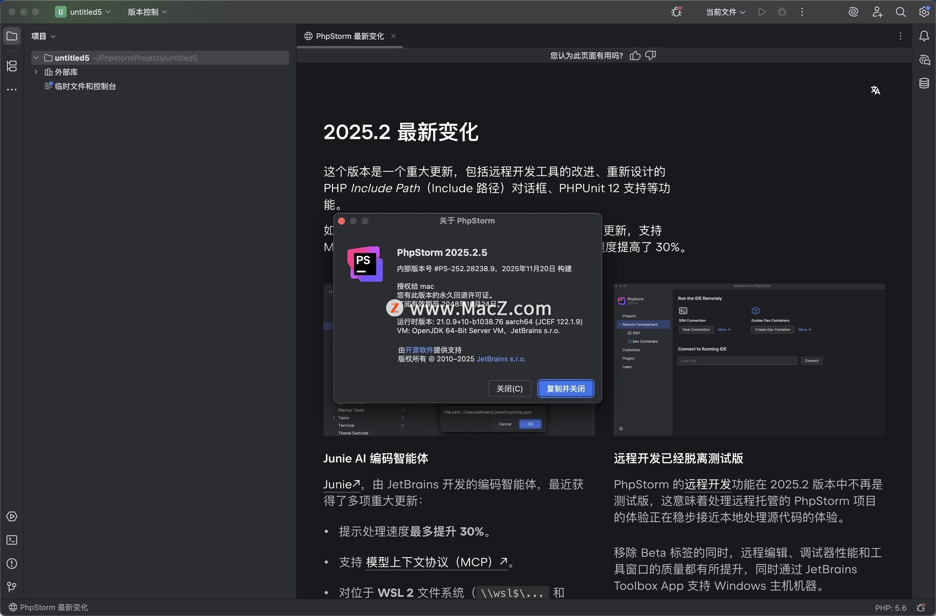 JetBrAIns Phpstorm 2025 是一款 PHP 集成开发环境(IDE),专为提升 PHP 开发者的效率与体验而设计。该版本在代码智能、调试、框架支持、AI 辅助等方面进行了全面升级。