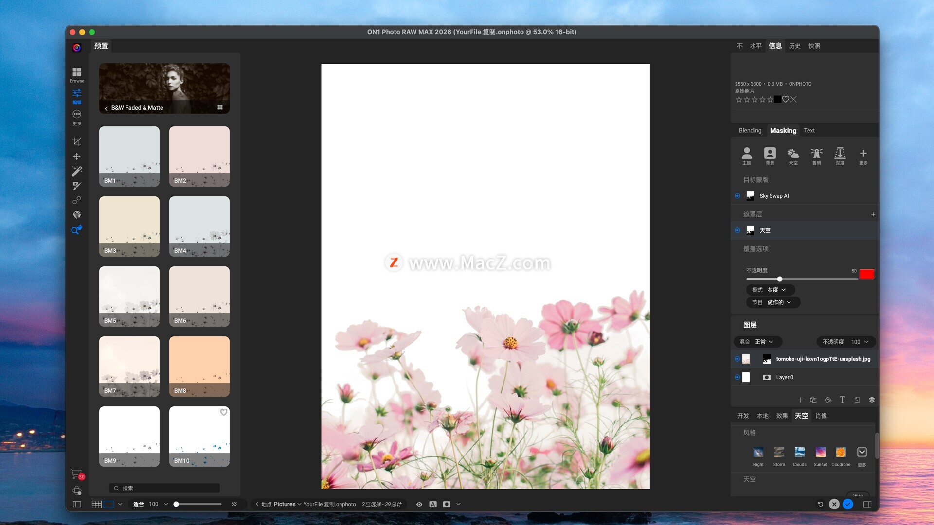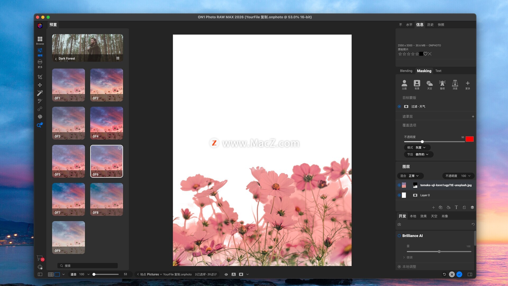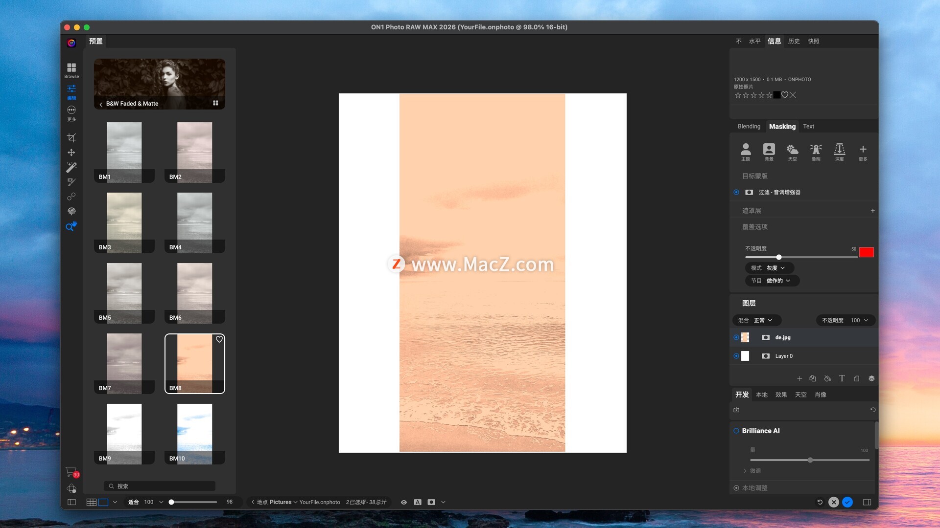 ON1 Photo RAW 2026 是一款功能强大的照片编辑软件,为摄影师提供众多工具和功能,帮助他们增强和修饰图像。它拥有用户友好的界面,提供高级编辑功能,包括无损编辑、AI 调整以及对色彩和色调的精确控制。它还支持 800 多种相机的 RAW 文件,并兼容 JPEG、TIF、psD、psB、PNG 和 DNG 文件。