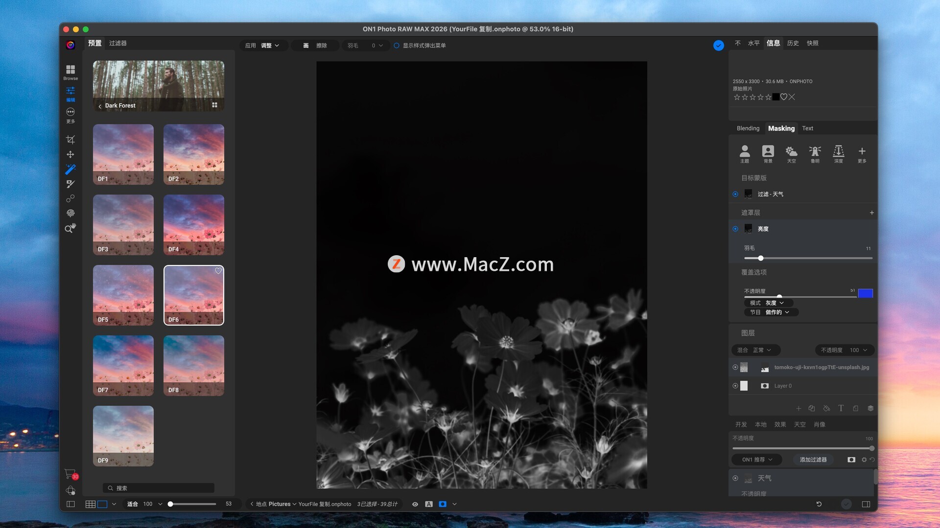 ON1 Photo RAW 2026 中的自动主体和背景蒙版。快速、准确、轻松。
