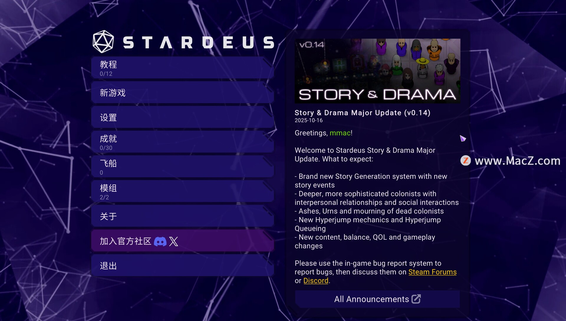 《Stardeus》是一款颇具深度的太空殖民模拟游戏,主体是一艘破损的宇宙飞船,载着各种无人机和休眠的人类幸存者。本游戏灵感来源于《异星工厂》和《环世界》。你的角色是一个永生的 AI,由你操控无人机修复飞船,拯救或者利用飞船上休眠的人类船员,然后与他们一起在这个虚拟的宇宙中旅行,探索这个美丽且复杂的随机生成世界。