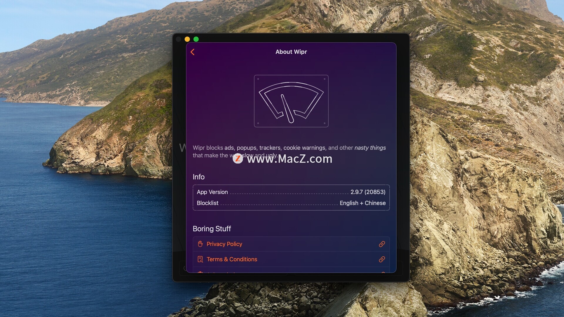 Wipr for mac是Macos上一款Safari广告拦截工具,可以阻止广告、弹出窗口、跟踪器、cookie 警告和其他让您的浏览体验变得缓慢和糟糕的讨厌的东西。