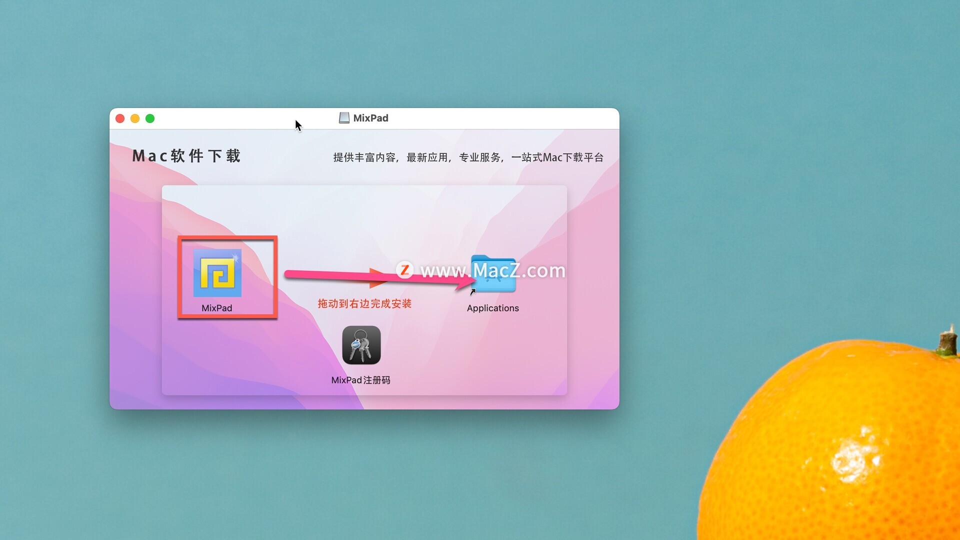 安装包下载完成后,拖动左侧软件到右侧应用程序中即可