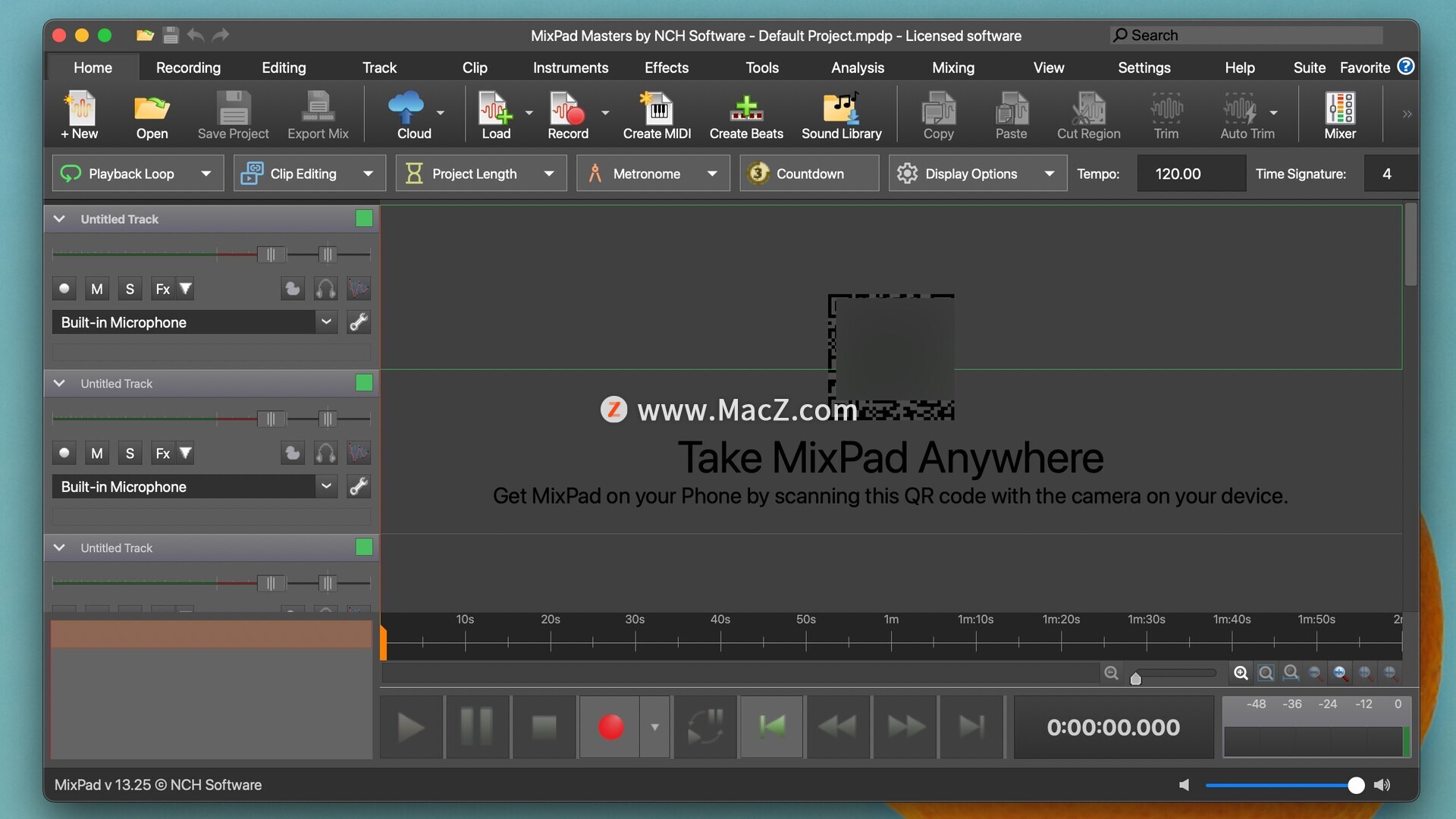无论您是新手还是专业音乐家,NCH MixPad Masters 都是一款在 Mac 上创作和制作音乐的强大工具。测试环境:MacOS 14.7/26.2系统