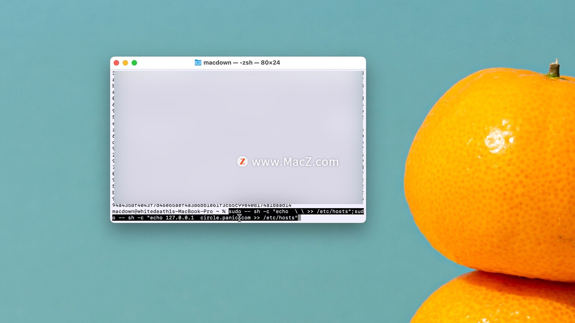 完成后复制下面代码粘贴到终端回车,屏蔽对circle.panic.com的连接。