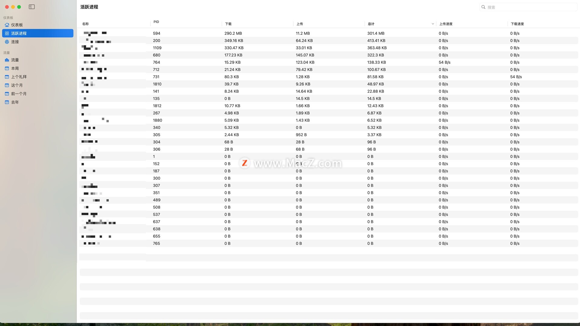 - 打开“进程”页面,查看当前哪个活动应用程序正在使用最多的网络资源。